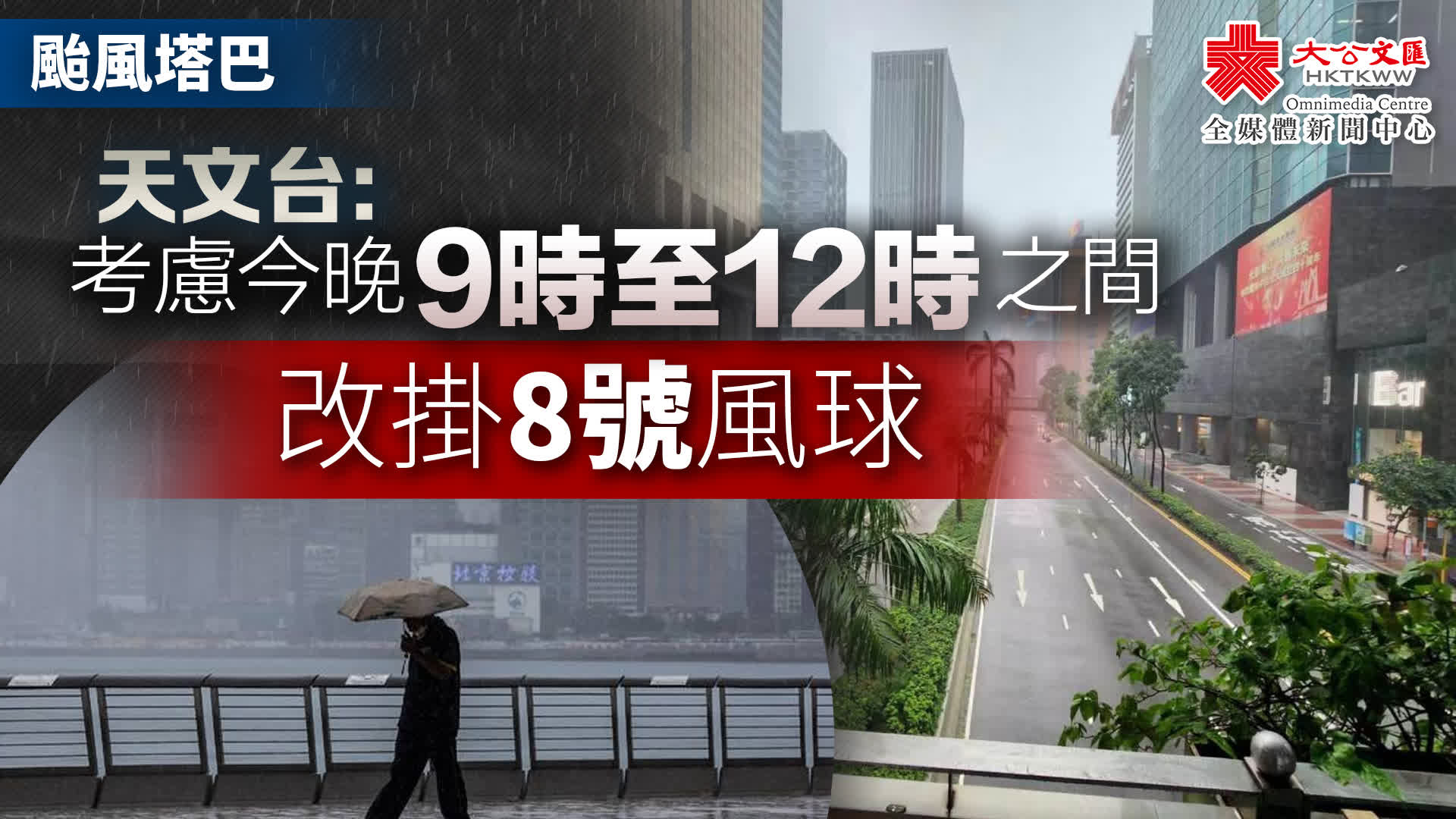 大公文匯全媒體報道,過去兩三小時,「塔巴」穩定地向西北偏北方向移動,而其外圍雷雨帶正影響廣東沿岸。天文台表示,按照現時預測,「塔巴」會進一步增強並靠近廣東西部沿岸,在明早於香港西南面200公里內掠過。其烈風區將會逐漸影響珠江口一帶,本港風勢將逐步增強。天文台會考慮在今晚9時至午夜12時之間改發八號烈風或暴風信號。