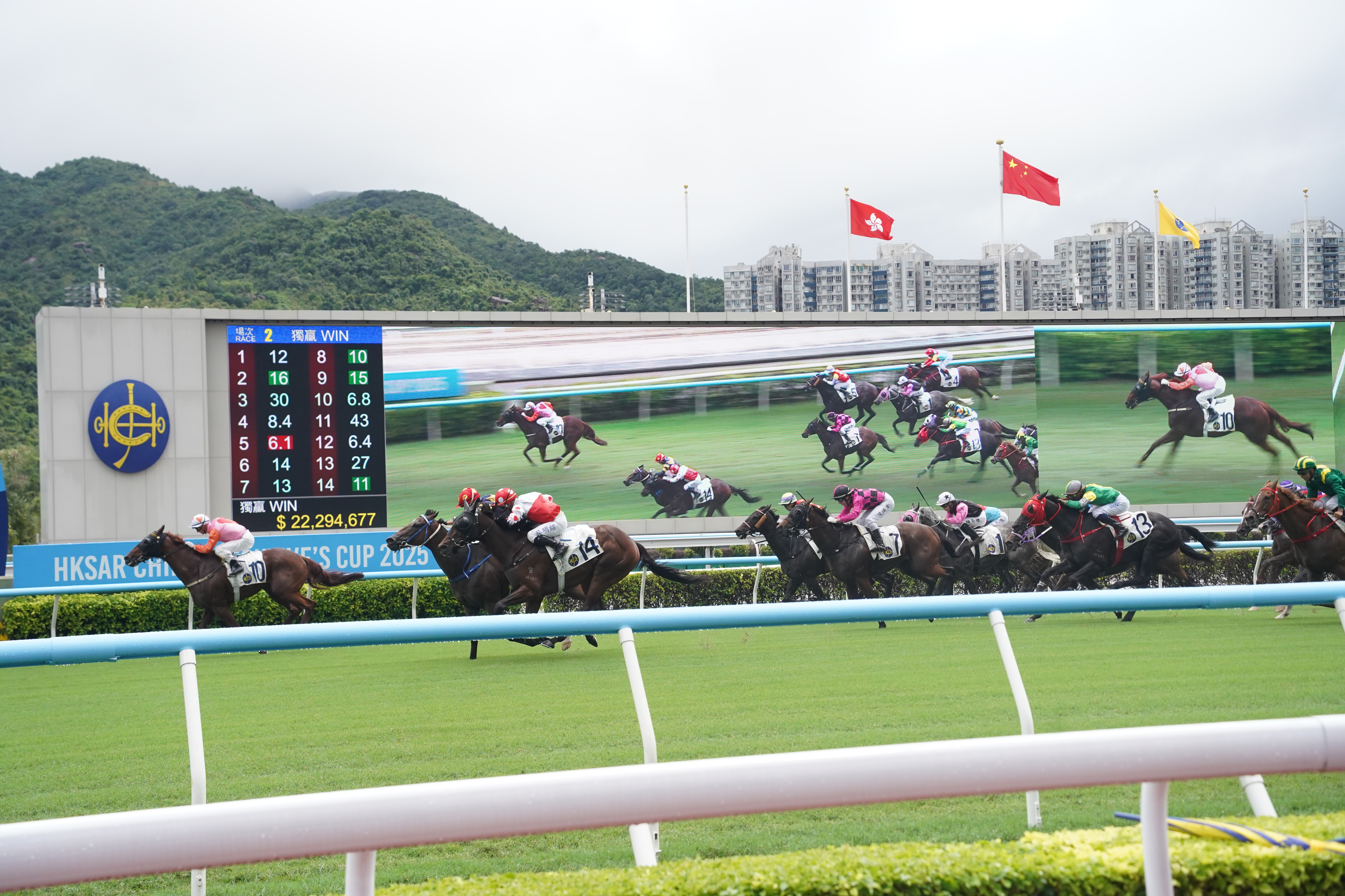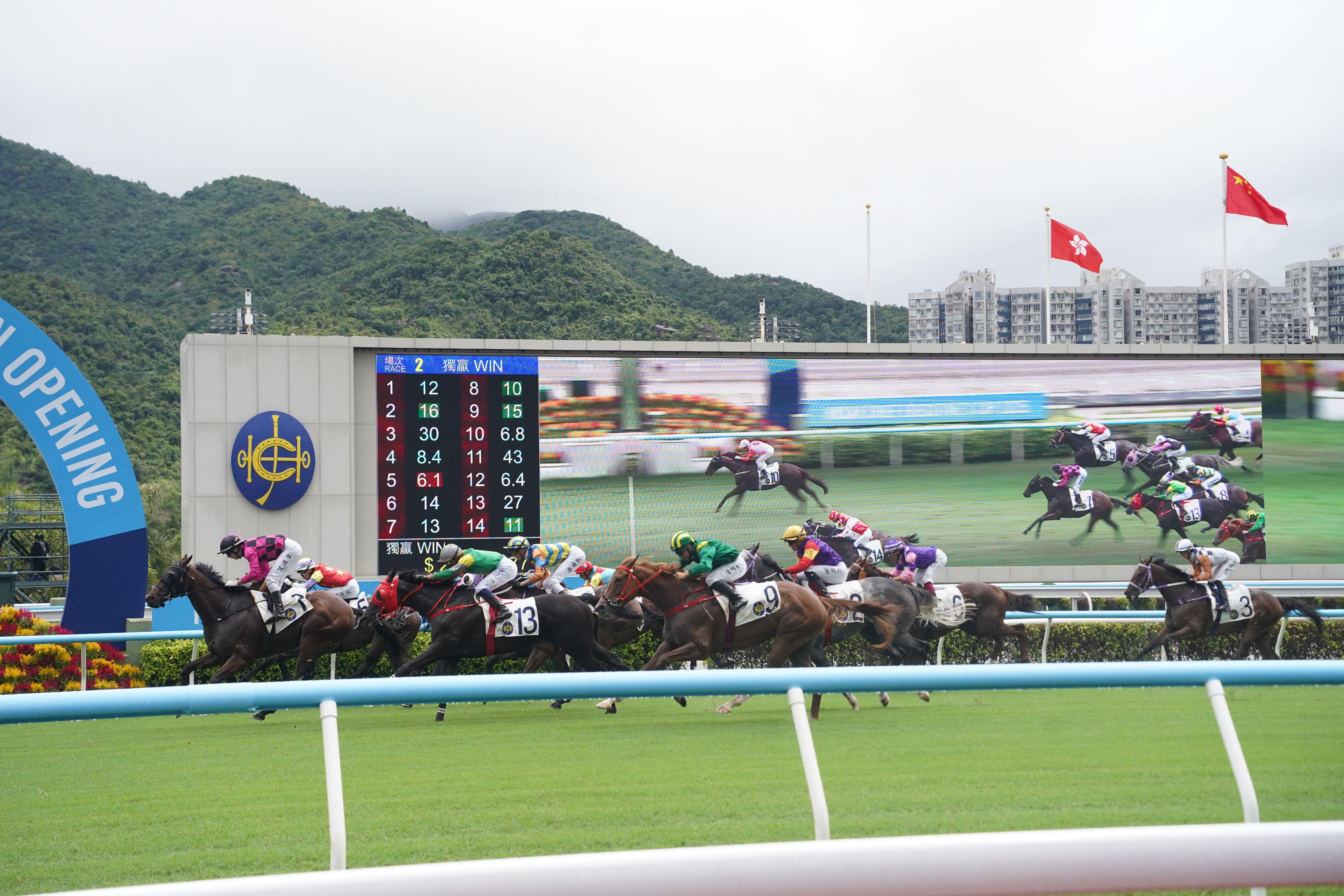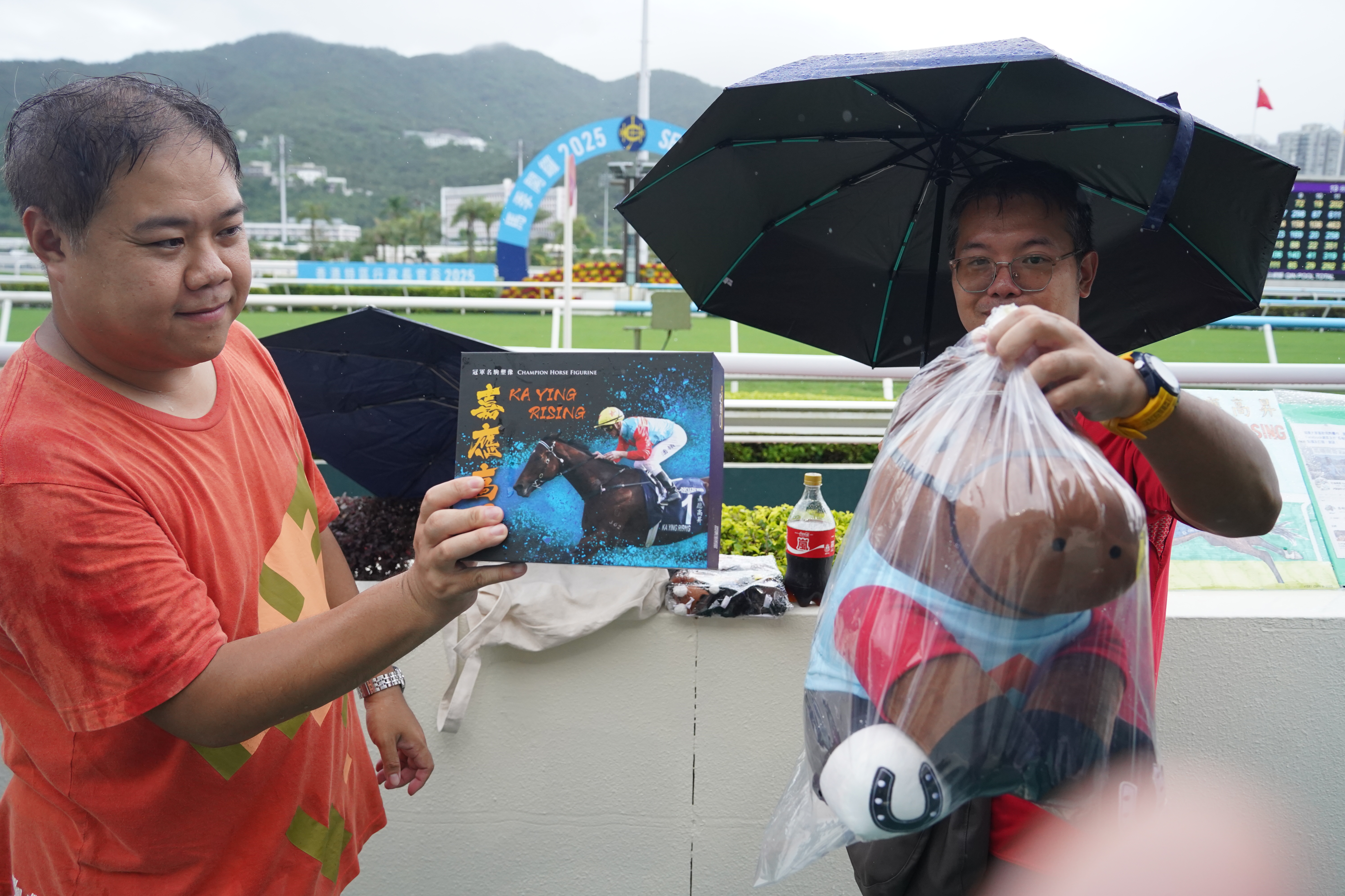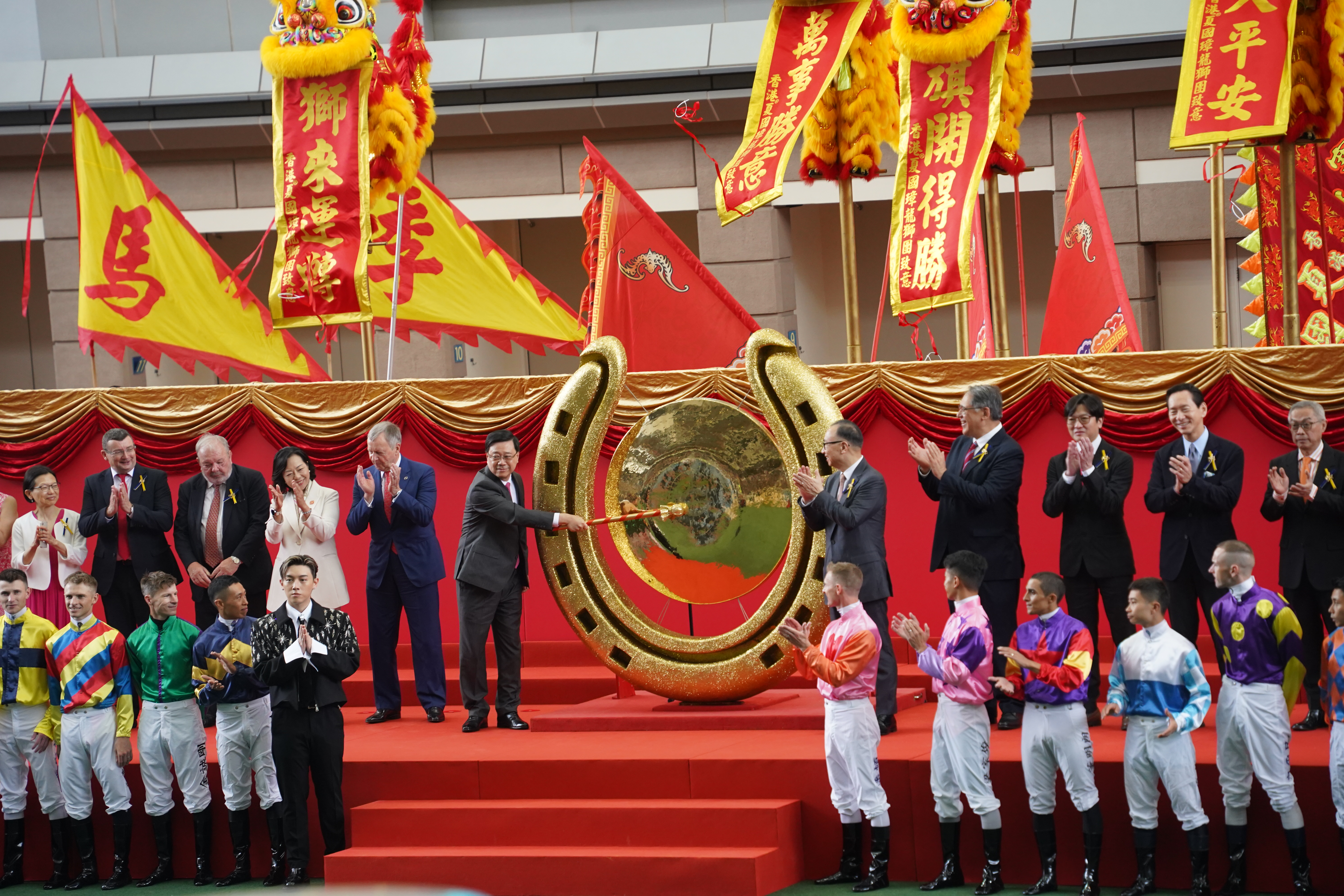 (大公文匯全媒體記者 周傾芫 報道)新馬季今日(7日)開鑼!雖然落雨,但沙田馬場依然人氣爆棚,市民擔遮都要來迎好運!行政長官李家超親手敲鑼,樂壇小天王張天賦獻上開季演唱。
