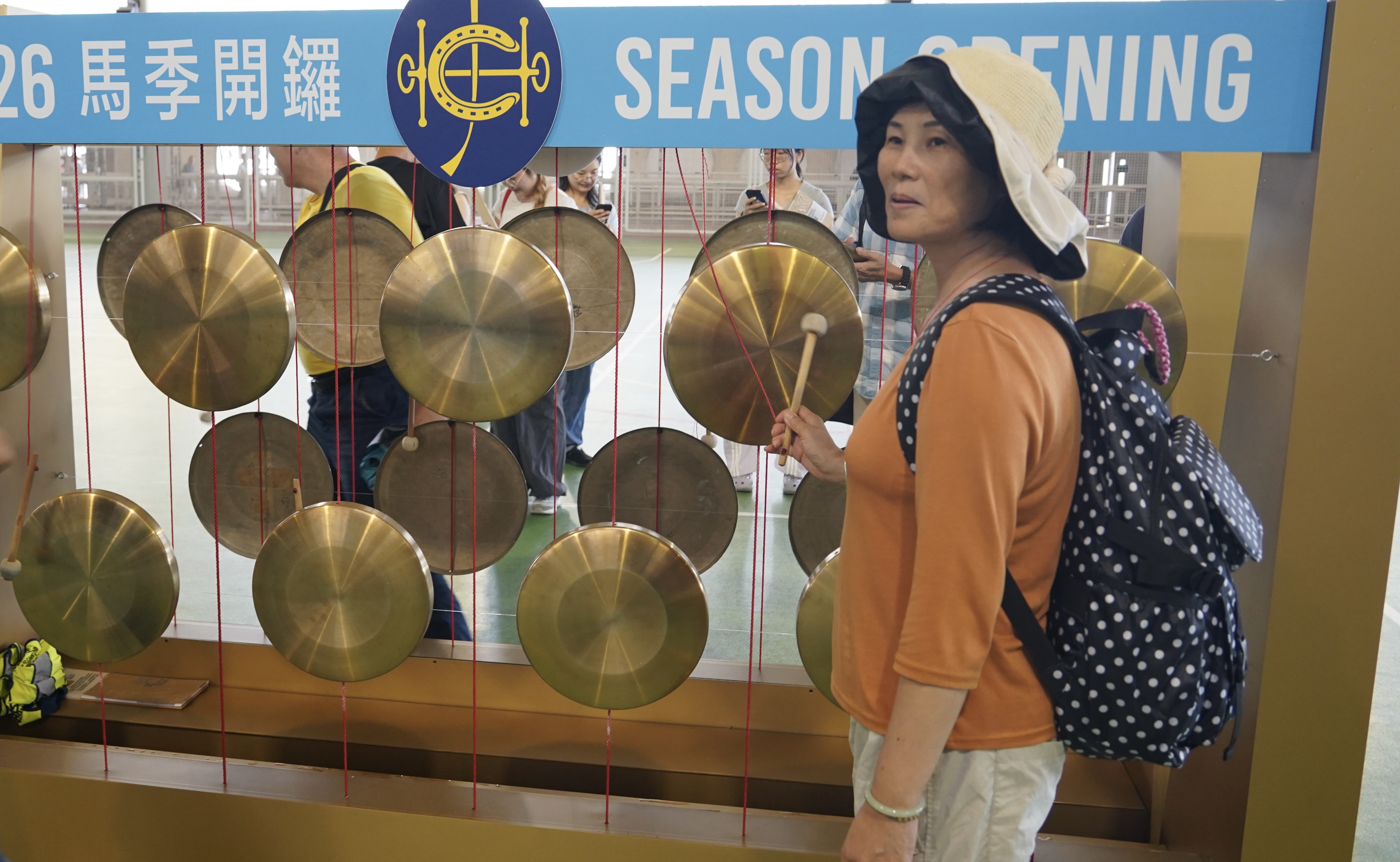 未到開放入場的時間,馬場入口已經有「人龍」出現。而場內除了下注的人排長龍外,敲鑼討喜頭的人都不少。