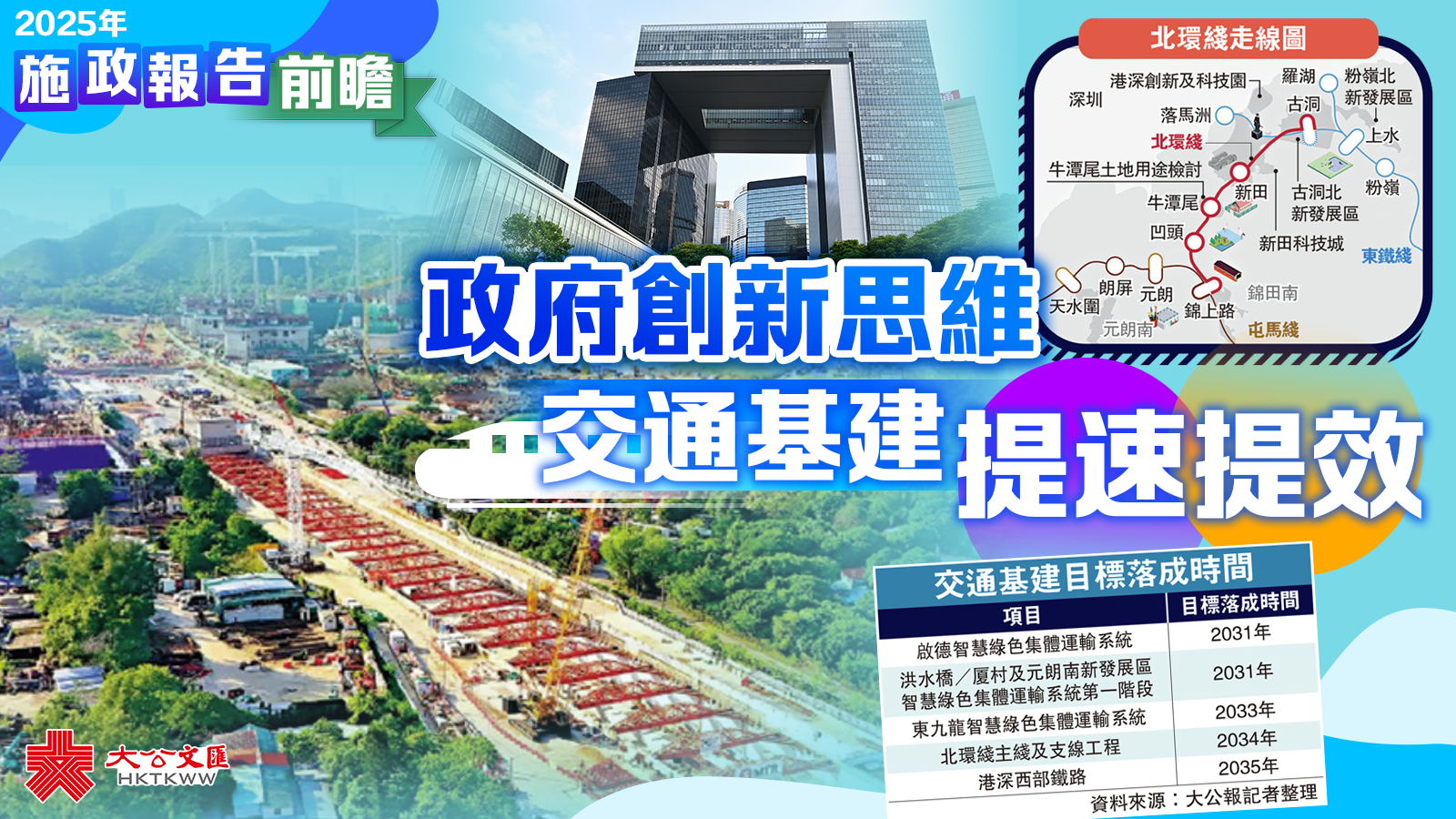 (大公報記者 易曉彤)新一份施政報告將於下周三發表,過去兩年施政報告就推動交通運輸建設均有着墨,提速推展項目亦見成效,三條智慧綠色集體運輸系統提前一至三年落成,北環綫支線亦較原先提早約兩年開通。
