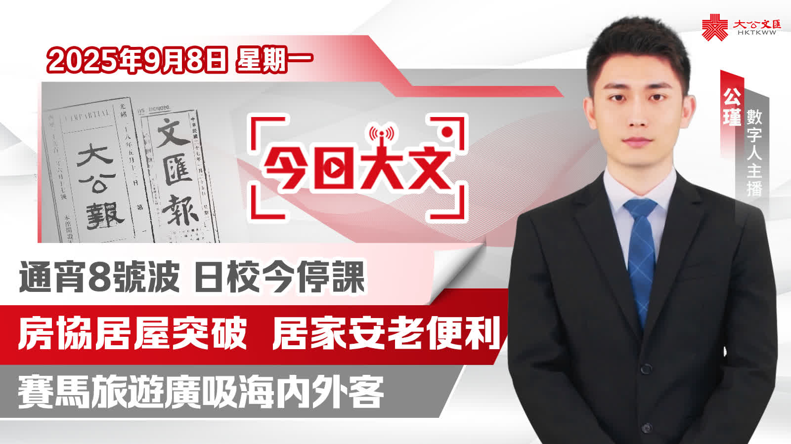 今天是2025年9月8日(星期一),大公文匯網與您速覽報紙看點。