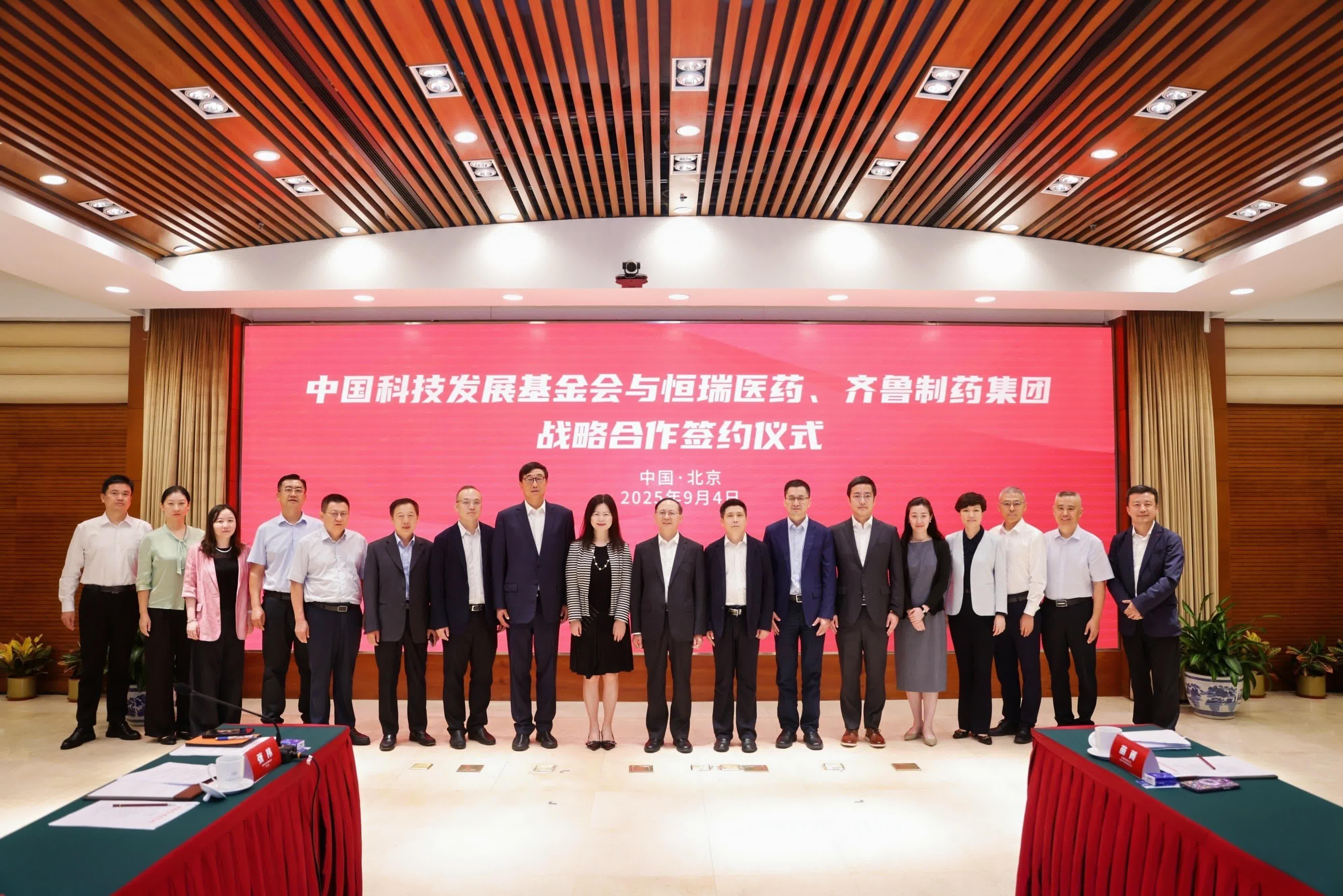 繼與國家自然科學基金委員會簽訂戰略合作之後,齊魯製藥在科技創新發展的征程上再續篇章。9月4日,齊魯製藥與中國科學技術協會所屬的中國科技發展基金會在北京正式簽署戰略合作協議,齊魯製藥向中國科技發展基金會捐資1億元人民幣,大力支持青年科技人才成長、科學普及、國際交流等公益事業。中國科協黨組副書記、副主席、書記處書記馮身洪出席簽約儀式並致辭,齊魯製藥集團副總裁、齊魯製藥有限公司董事長張明會等出席簽約儀式。