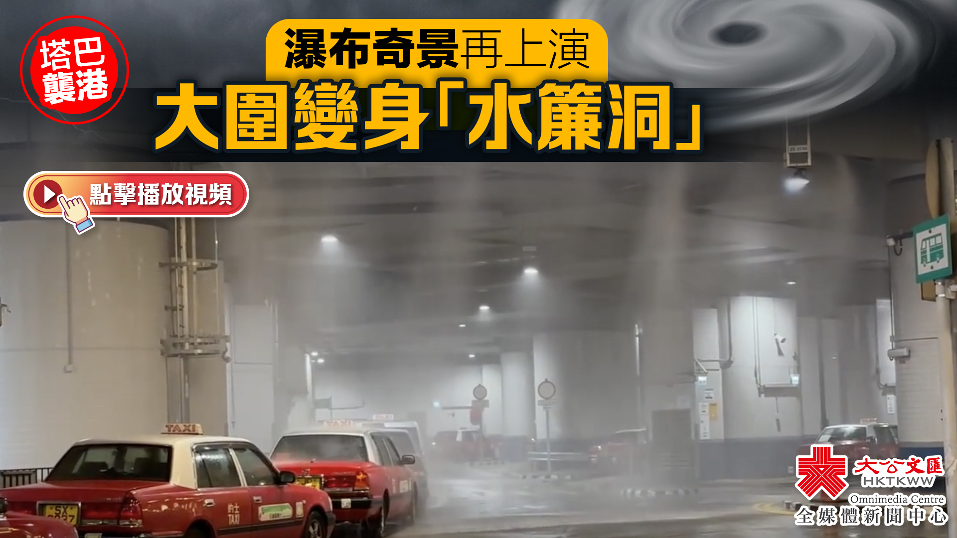 大公文匯全媒體報道,颱風「塔巴」襲港,本港今日(8日)風雨交加,大圍更是上演「水簾洞」奇景。有網友於社交平台發布影片,畫面可見,在大圍站公共運輸交匯處,大量雨水從天花板傾瀉而下,形成一道道壯觀的「瀑布」,猶如西遊記中的「水簾洞」奇景。