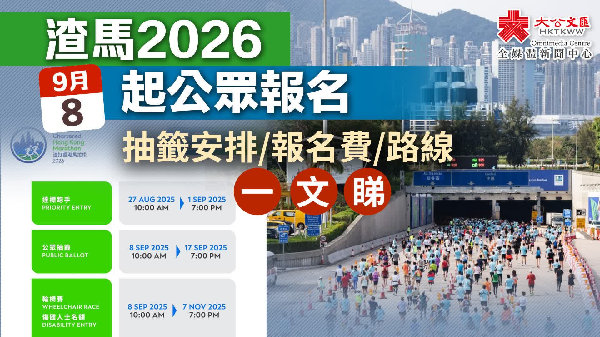 大公文匯全媒體報道,全城矚目的年度盛事渣打香港馬拉松2026,將於明年1月18日(星期日)舉行。一般公眾人士可由今日(8日)起進入大會網站報名,各項賽事合共參賽名額為7.4萬個。賽事路線維持不變,以維園為終點,設有馬拉松、半馬拉松、十公里賽及輪椅賽項目等。(點此報名)