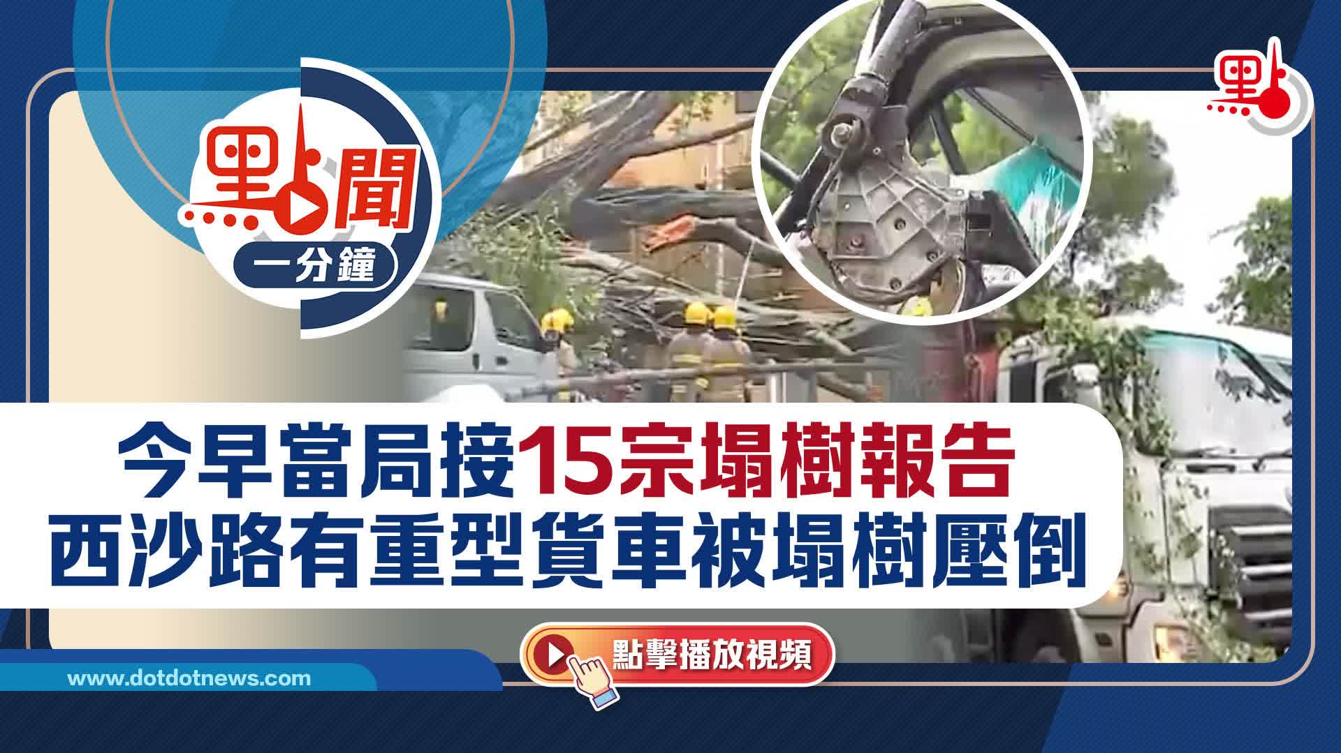 大公文匯全媒體報道,受熱帶氣旋「塔巴」影響,截止今早(8日)8時,政府和消防共收到15宗塌樹報告。其中在西沙路有行駛中的重型貨車被塌樹壓倒。