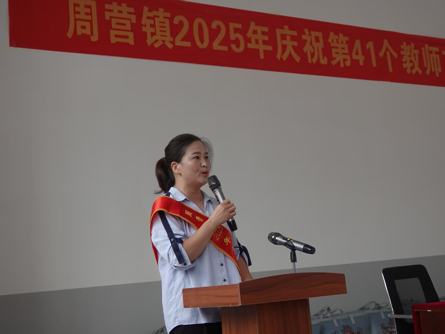 會議分兩個階段召開。報告會上,與會人員聆聽了周營一中教師孟靈、孔令偉,周營小學教師韓翠、孔錦錦,李口小學教師李文艷、黃孟營小學教師孫海霞、歐營小學教師歐陽典典、集英小學教師張丹梅、李樓營小學教師徐孟情、劉集小學教師徐書廷等10名師德先進個人代表故事與育人經驗,感受他們的教育情懷與責任擔當。