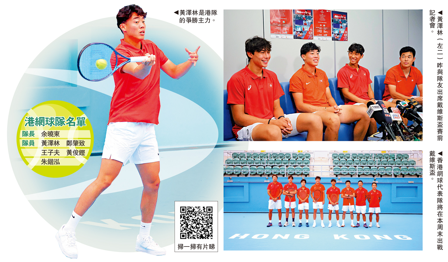 香港網球「一哥」黃澤林在本屆美網止步32強後,隨即返港休整,昨與一眾隊友出席賽前記者會。港隊曾在去年9月的戴維斯盃對陣厄瓜多爾,最終以總場數2:3不敵,今次對手則是同組別5號種子烏茲別克斯坦。黃澤林表示,非常高興再次抽中在主場作戰,個人目標則是為球隊取得勝利。