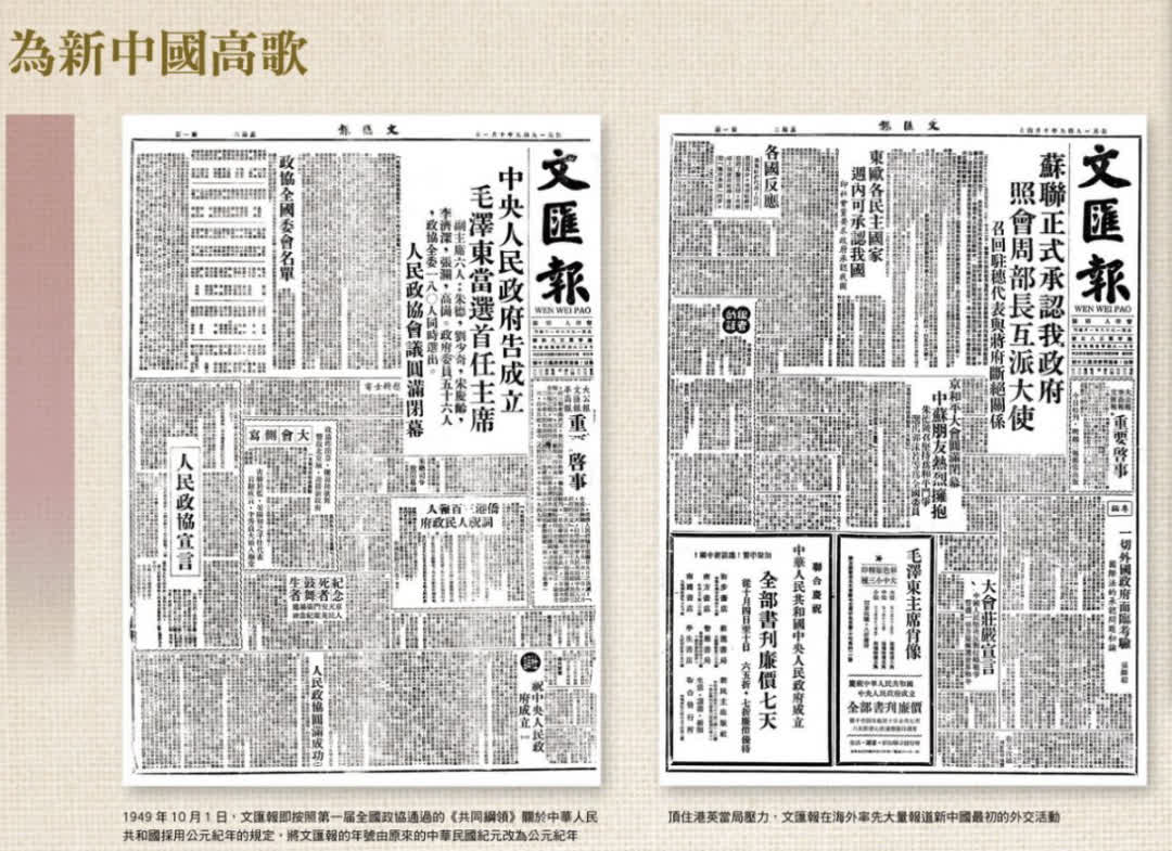 1949年10月1日起,香港《文匯報》將原來的中華民國紀年改為公元紀年,鮮明地表明自己擁護新中國的政治態度。