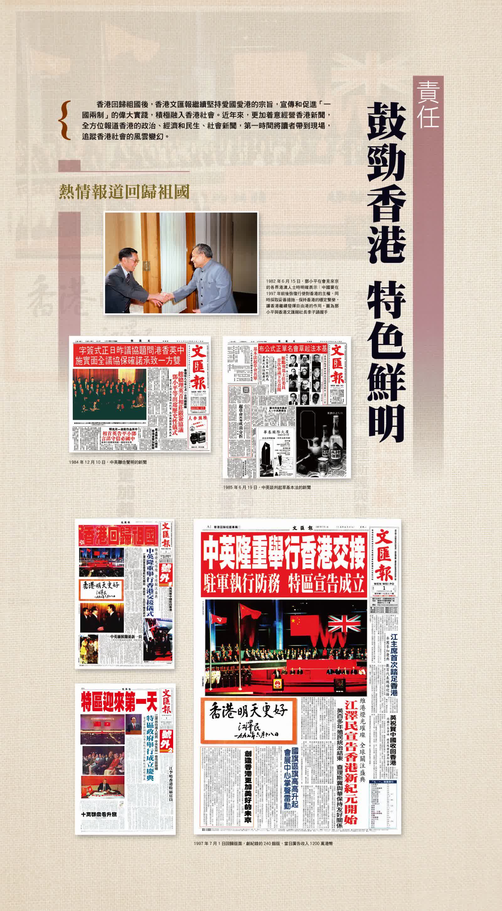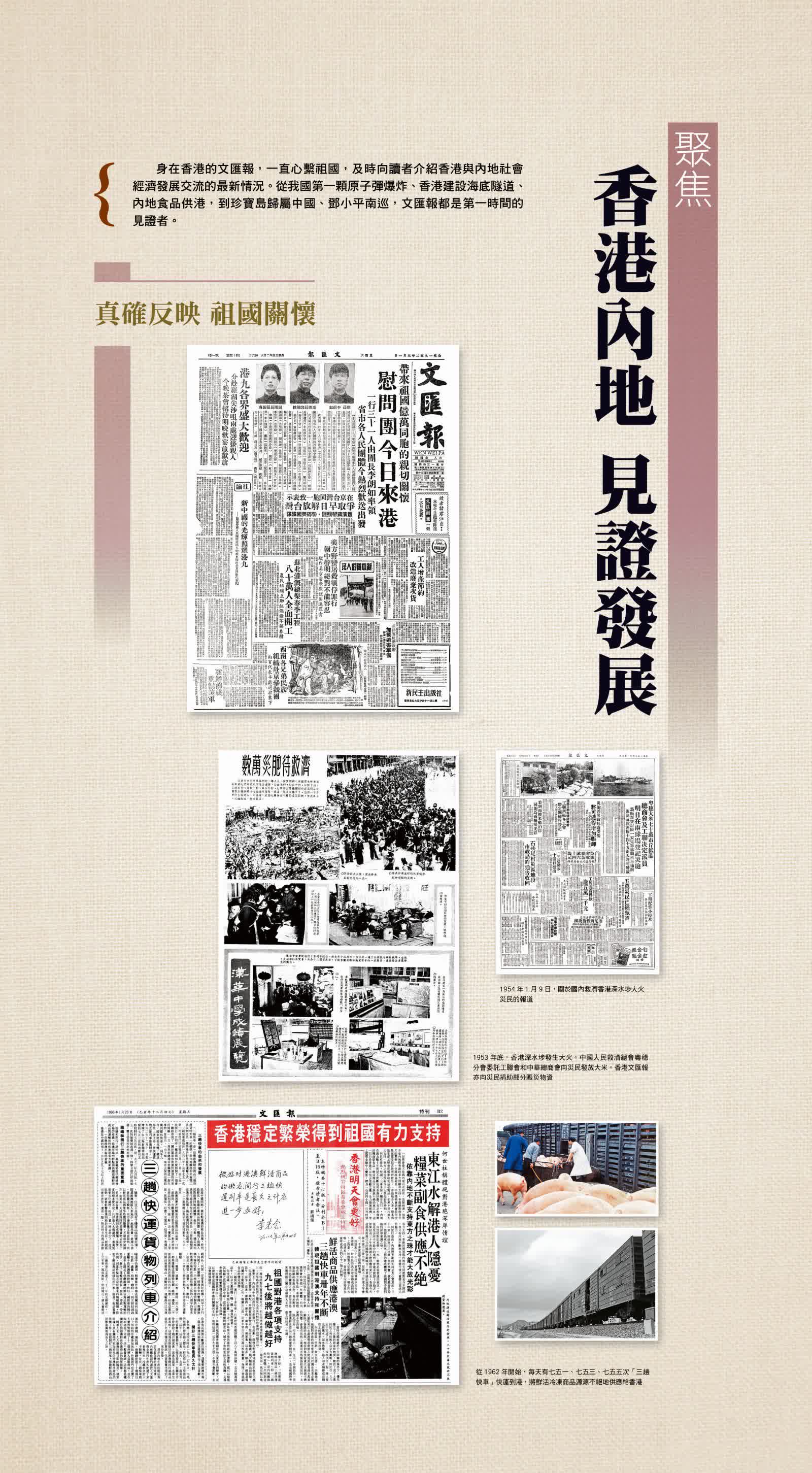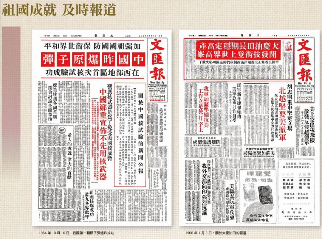 從我國第一顆原子彈爆炸、香港建設海底隧道、內地食品供港,到珍寶島歸屬中國、鄧小平南方視察,香港《文匯報》都是第一時間報道。