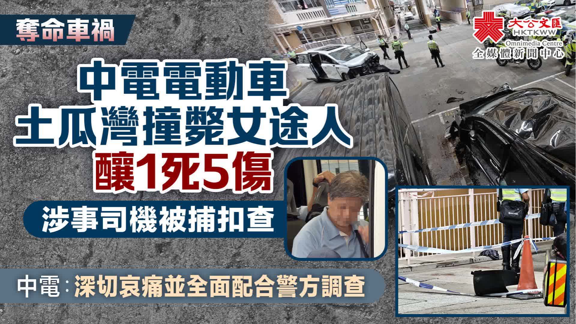 另外5名傷者,包括電動車男司機、同車3名乘客,以及另一名女途人,其後亦由救護車分送廣華醫院及伊利沙伯醫院救治,警方正調查意外原因。至於涉事的62歲姓李中電男司機,事後被警方以涉嫌危險駕駛引致他人死亡被捕,現正被扣留調查。