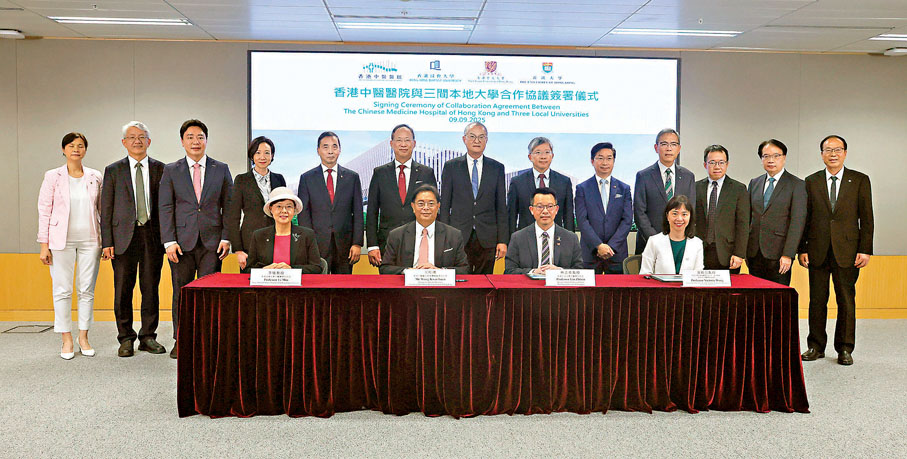 (香港文匯報 記者 李千尋)香港首間中醫醫院將於今年12月11日起分階段投入服務。院方昨日與香港浸會大學、香港中文大學及香港大學簽署合作協議,涵蓋醫院管治、人才交流、醫療服務、教學及培訓及科研等範疇,共同推動本地中醫藥的高質量發展。香港中醫醫院行政總監卞兆祥表示,該院的招聘工作接近尾聲,目前主要進行內部培訓,讓來自不同地方的醫護能更熟習醫院的政策及流程。該院營運首年,上述三間大學將調派中醫藥專家參與臨床服務,病人可由大學中醫診所轉介至該院治療,大學與醫院合作開展中醫藥臨床研究。至於收費安排,預計下月可正式公布。