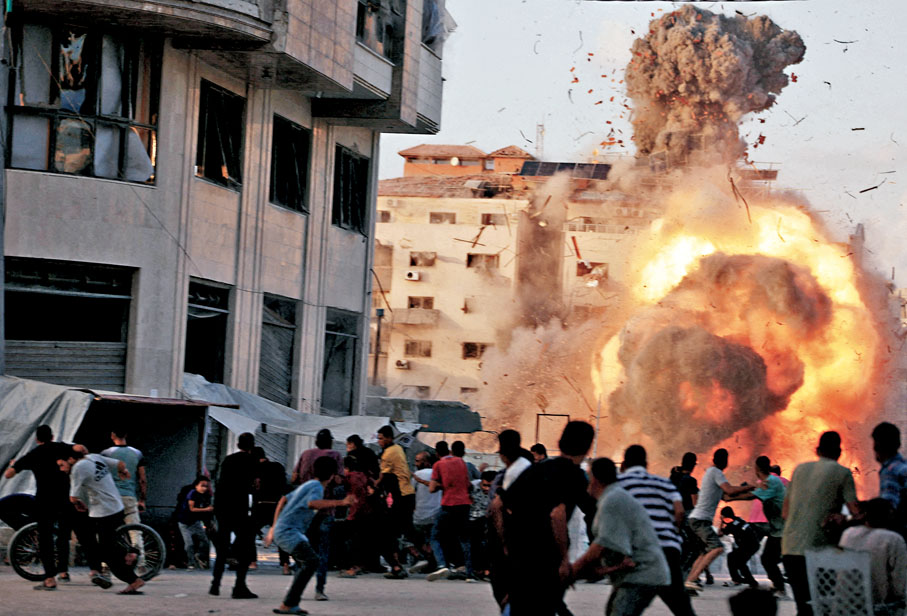 《衛報》等傳媒報道,以軍連日空襲已摧毀加沙城數十幢建築物,包括至少3座高層住宅大樓。半島電視台核實的一段現場影片顯示,加沙城中心的高層建築物薩拉姆塔被3枚導彈擊中,在巨大爆炸聲中被夷為平地。另有一座高15層的蘇西塔早前被以軍轟炸摧毀,以軍在沒有提供證據的情況下,聲稱哈馬斯在該建築物附近設有據點,哈馬斯批評相關指控毫無根據,被以軍轟炸的建築物是平民住宅。