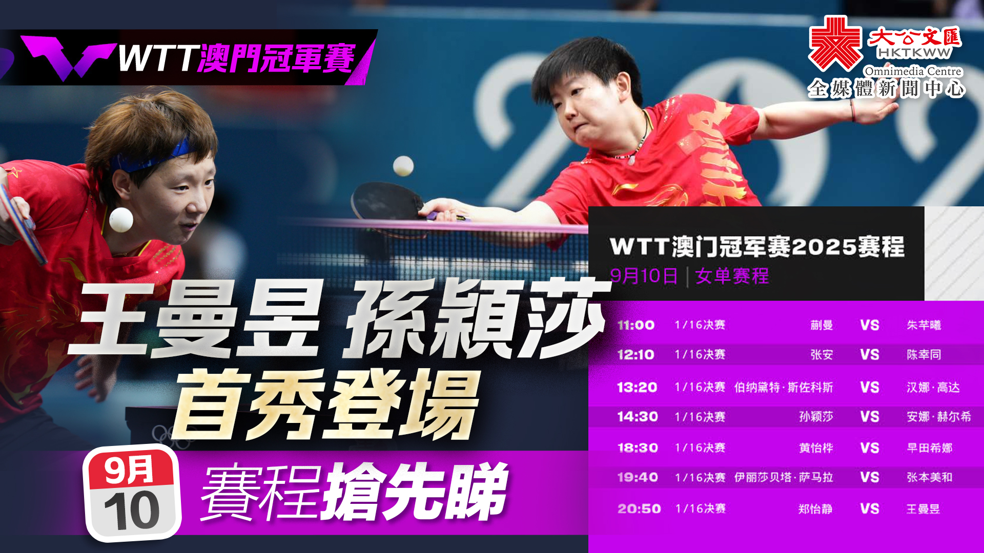 關鍵詞:WTT澳門孫穎莎王曼昱