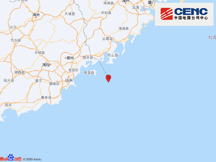 據內地網友反映,汕頭市區、福建東山等地有輕微震感。