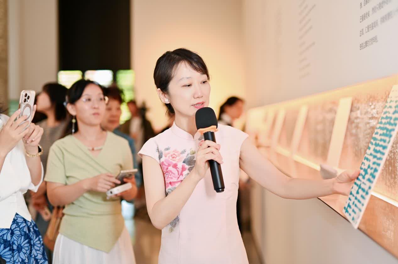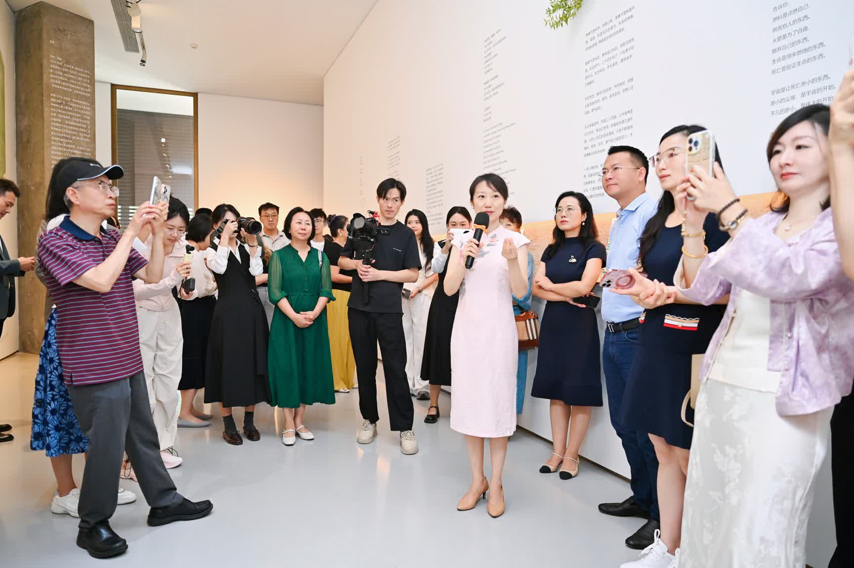聲音能否被看見呢?這場展覽以創新的「聲音可視化」技術給出了答案。《觀·聲》展區內,名家朗誦的聲音通過圖形與色彩的動態變化得以視覺化呈現。策展團隊運用AI大數據技術抓取聲音特徵,生成符合美學規律的視覺作品。正如展覽發起人趙琳所言:「沒有節奏的圖案不美,沒有節奏的聲音也不美——它們的美學價值是成正比的。」