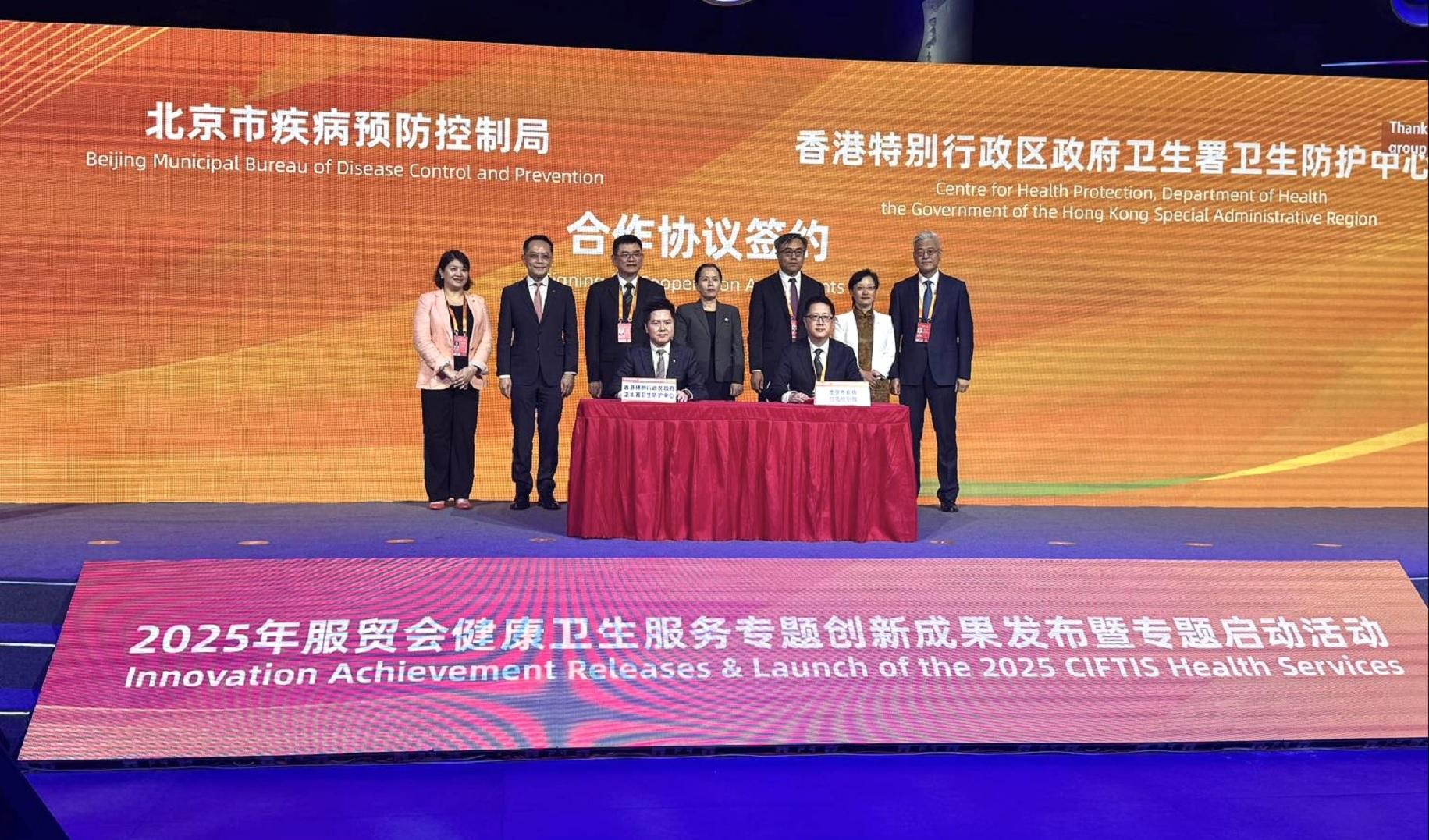 應北京市衞生健康委員會(衞健委)邀請,衞生署署長林文健醫生率領署方代表團前往北京拜訪公共衞生相關單位,深化合作。代表團今日(九月十日)出席二○二五年中國國際服務貿易交易會健康衞生服務專題創新成果發佈暨專題啓動活動,期間分別與北京市衞健委和疾病預防控制局(疾控局)簽署合作協議,夯實京港兩地在保障民眾健康和公共衞生協作的發展基石。