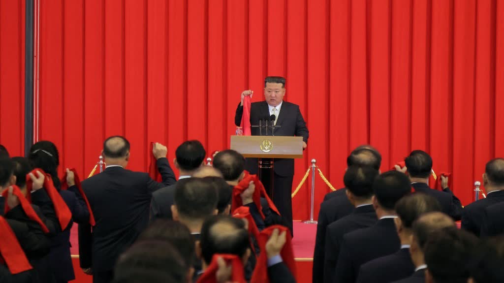 金正恩表示:「鑒於我國如今攀登的極高地位,我們引以為傲地總結自宣布新朝鮮成立的那一天起歷時77年的強國建設事業。現在,任何人、任何勢力都不能觸犯我們國家絕對的地位和安全,用我們雙手開啟的繁榮時代洪流是任何力量都不能逆轉的。」