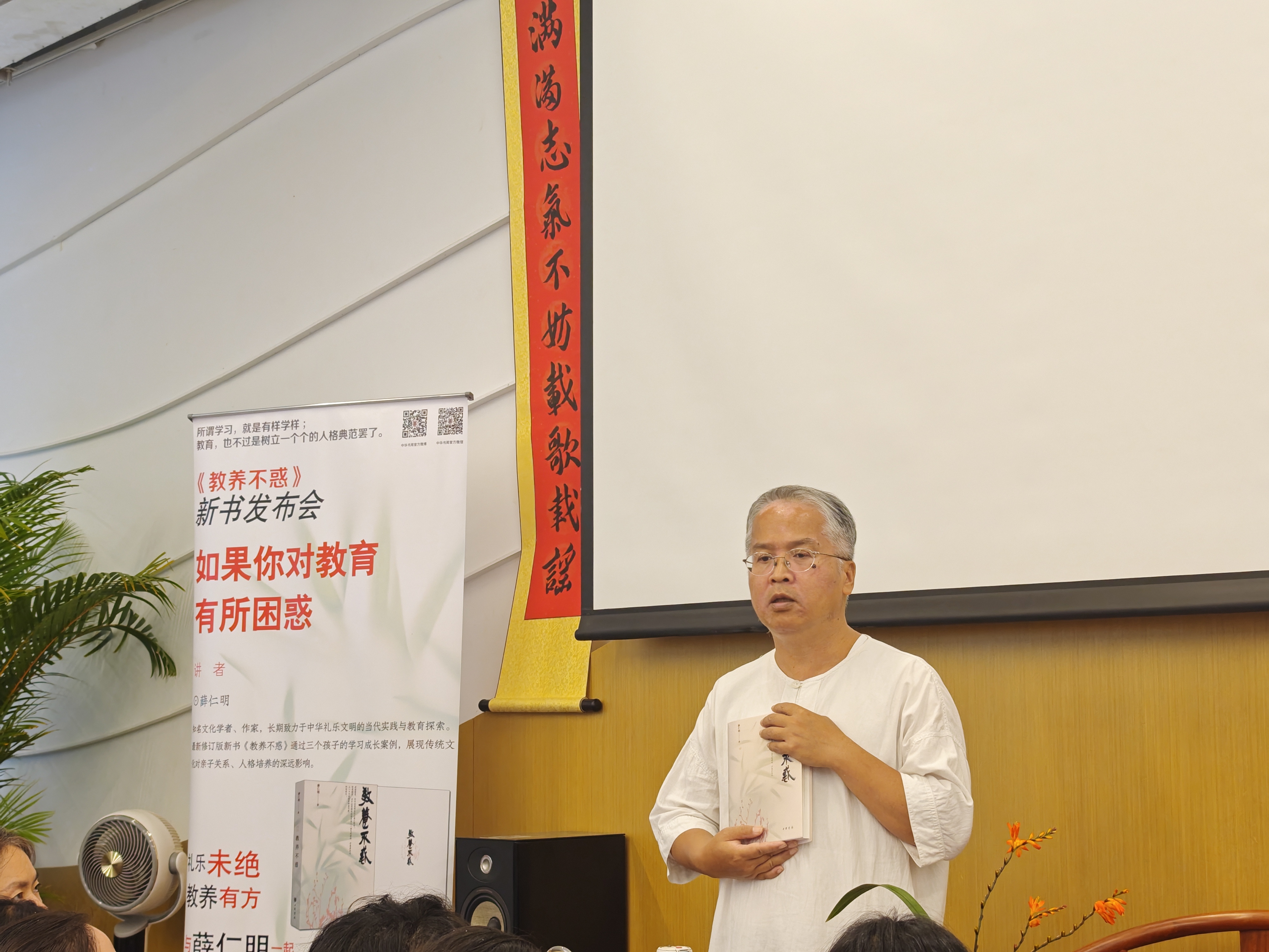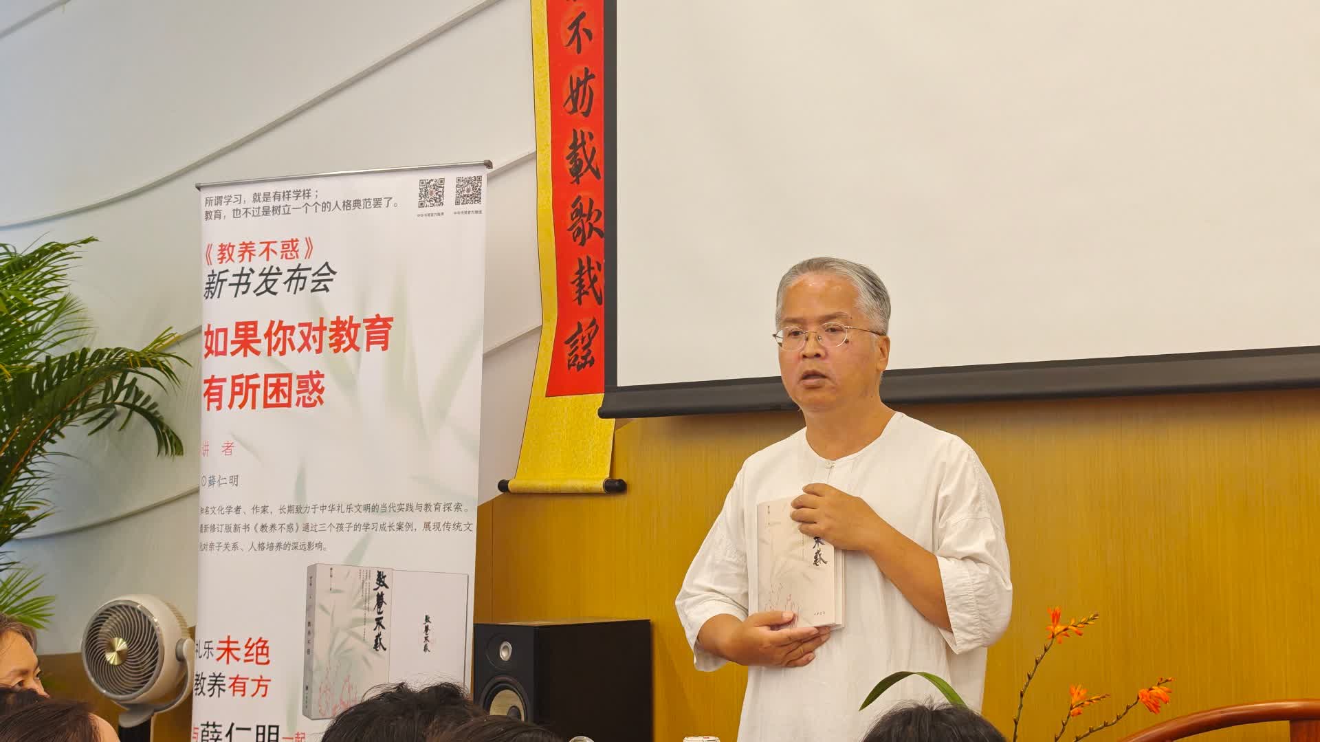 新書發布的同時,薛仁明還舉辦了題為《如果你對教育有所困惑》的講座及簽售活動。他認為,中華傳統文化裏蘊含豐富的教養智慧,通過禮樂教育可以把孩子培養成自在、光明、有根的人。禮樂文明,是這本書談教育根本的底色,亦是這場發布活動的關鍵詞。