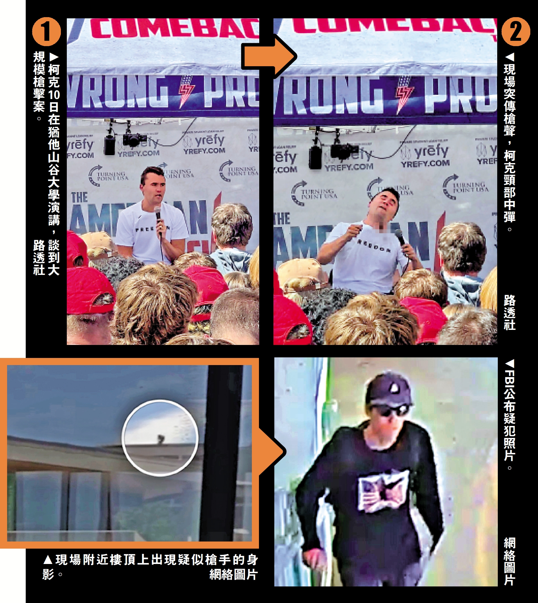 大公報綜合報道,美國總統特朗普的忠實盟友、31歲的右翼「網紅」查理·柯克10日在猶他州一所大學演講時遭槍殺,槍手目前仍在逃。柯克曾發表支持擁槍權的激進言論,遇害前一刻還在談論槍支暴力問題,他的死亡極具戲劇性,引發民主黨與共和黨、自由派與保守派之間的激烈爭執。特朗普先是下令全美降半旗誌哀,又稱將為柯克追授總統自由勳章。