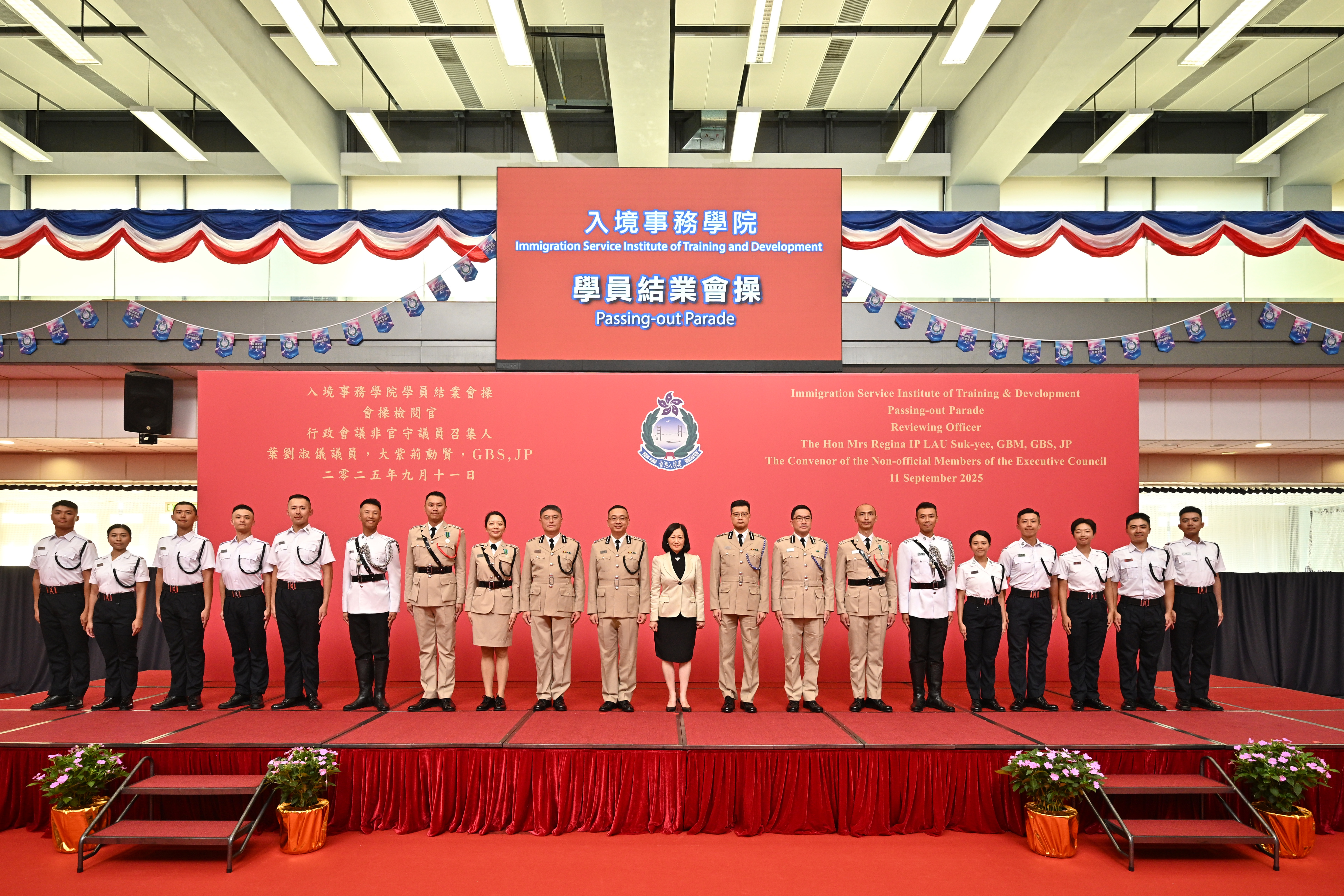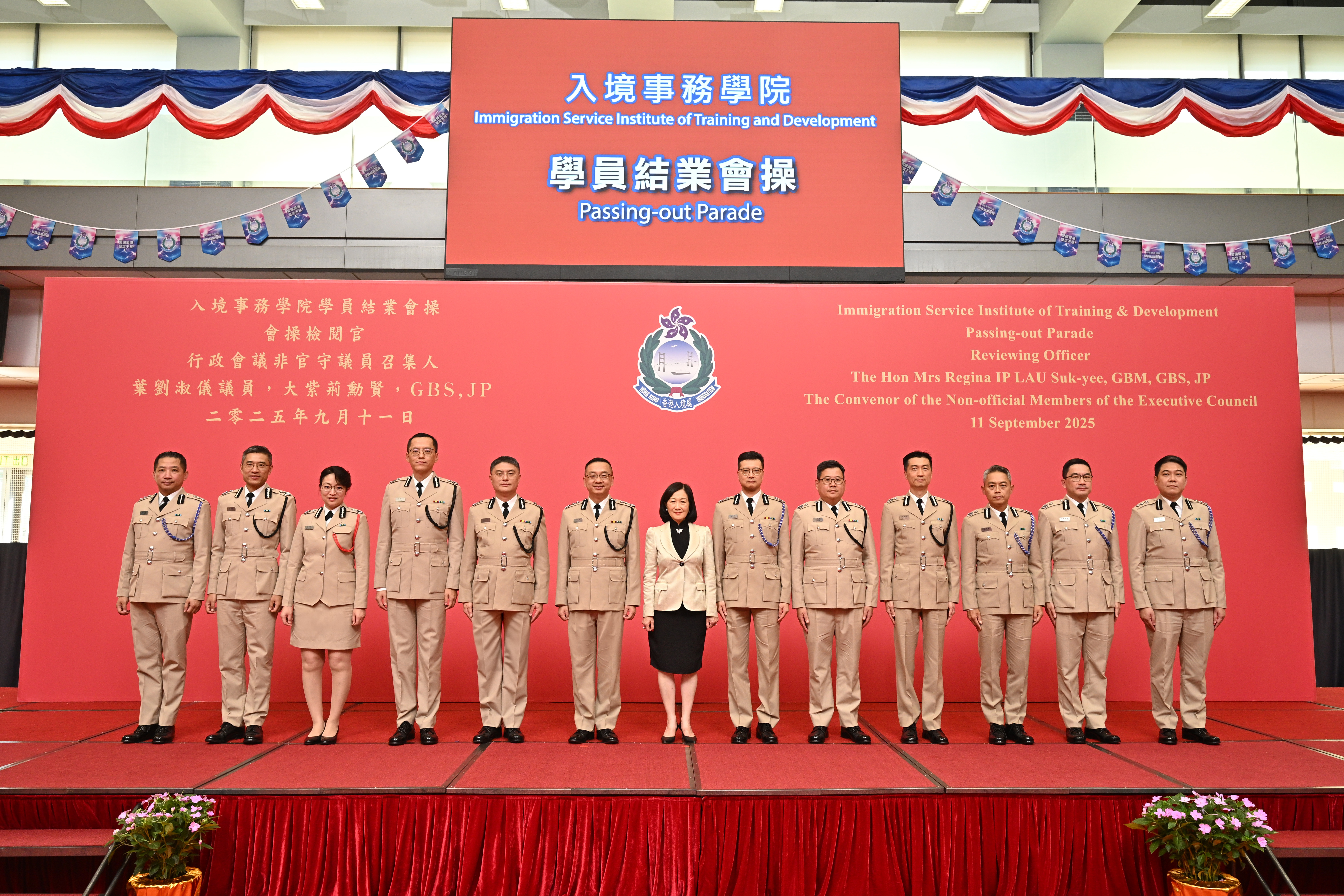 入境事務學院於9月11日舉行學員結業會操,行政會議非官守議員召集人葉劉淑儀擔任檢閱官,共211名結業學員接受檢閱,包括63名入境事務主任及148名入境事務助理員。