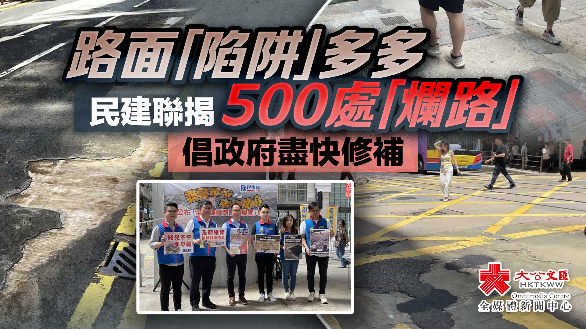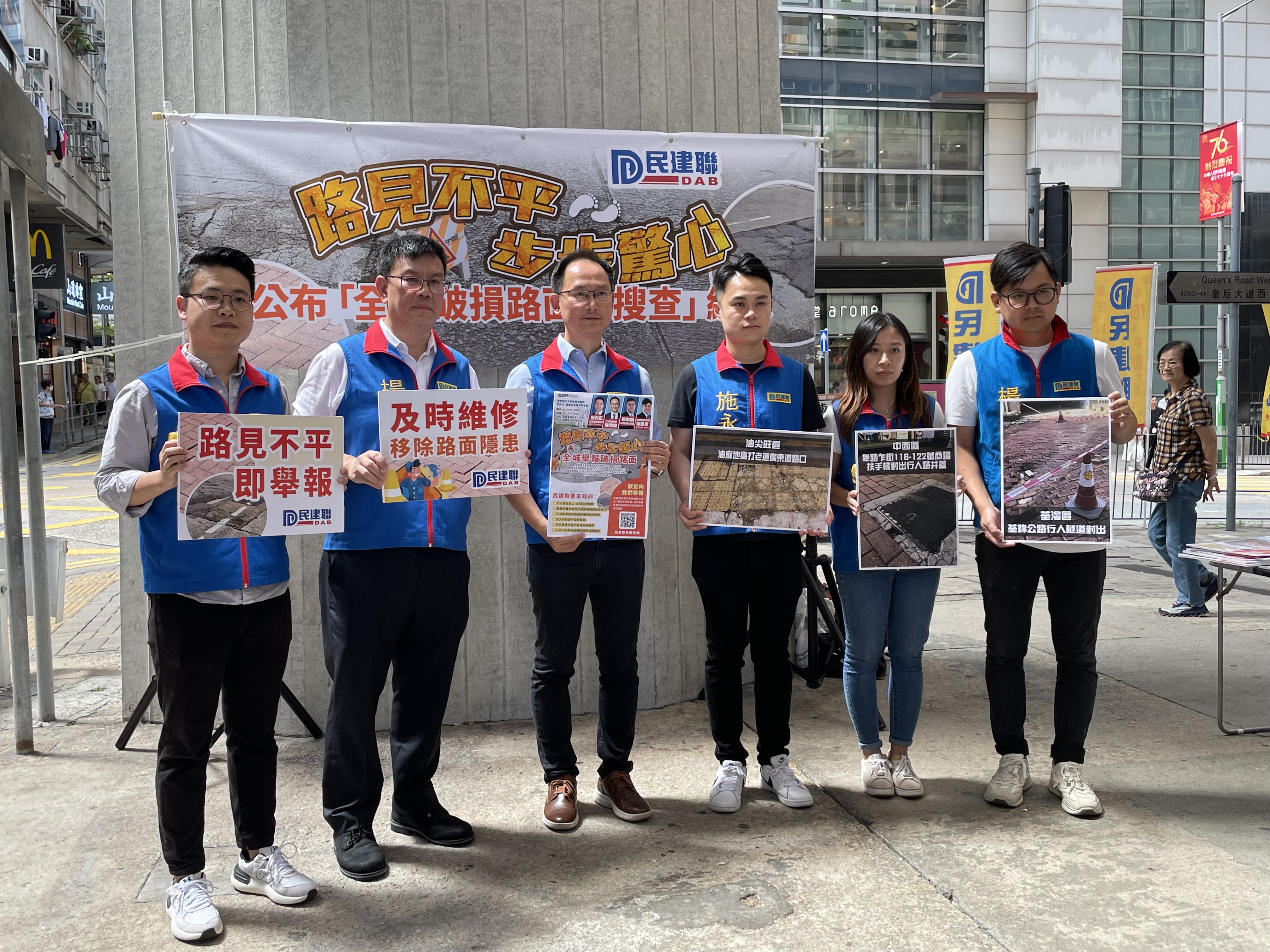陳學鋒指,不斷收到多宗涉及路面不平的投訴,路面問題甚至導致居民受傷入院的情況發生。他表示,民建聯於8月19日至9月3日在全港18區範圍內視察多處行人路及行車路,發現超過500處行車路及行人路情況欠佳,當中有235宗(約48%)來自行車道路,另外278宗(約52%)涉及行人路面,包括道路凹凸不平、路面破裂或行人路磚鬆脫及下陷,及沙井蓋鬆動突起等問題。
