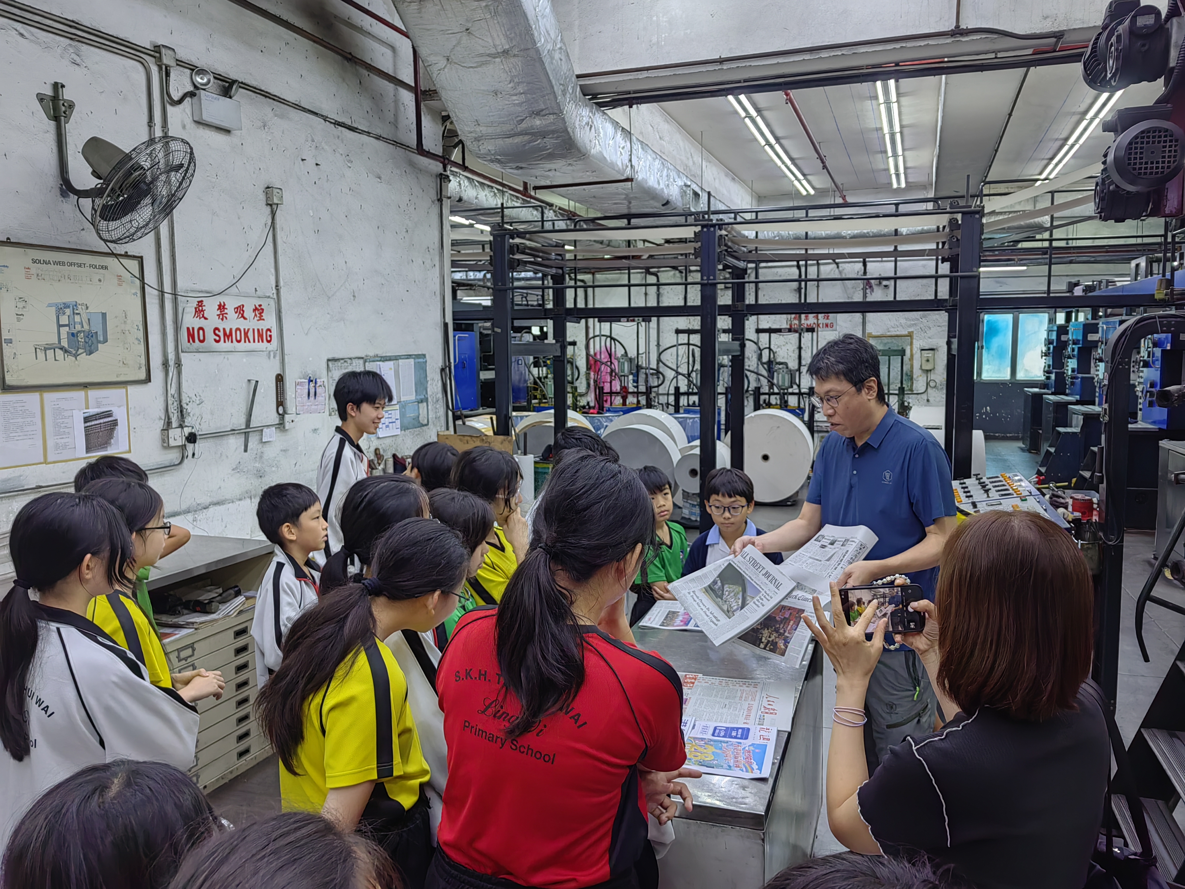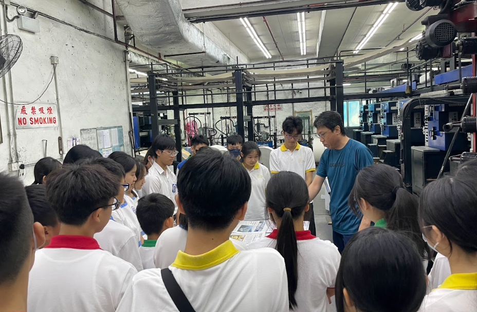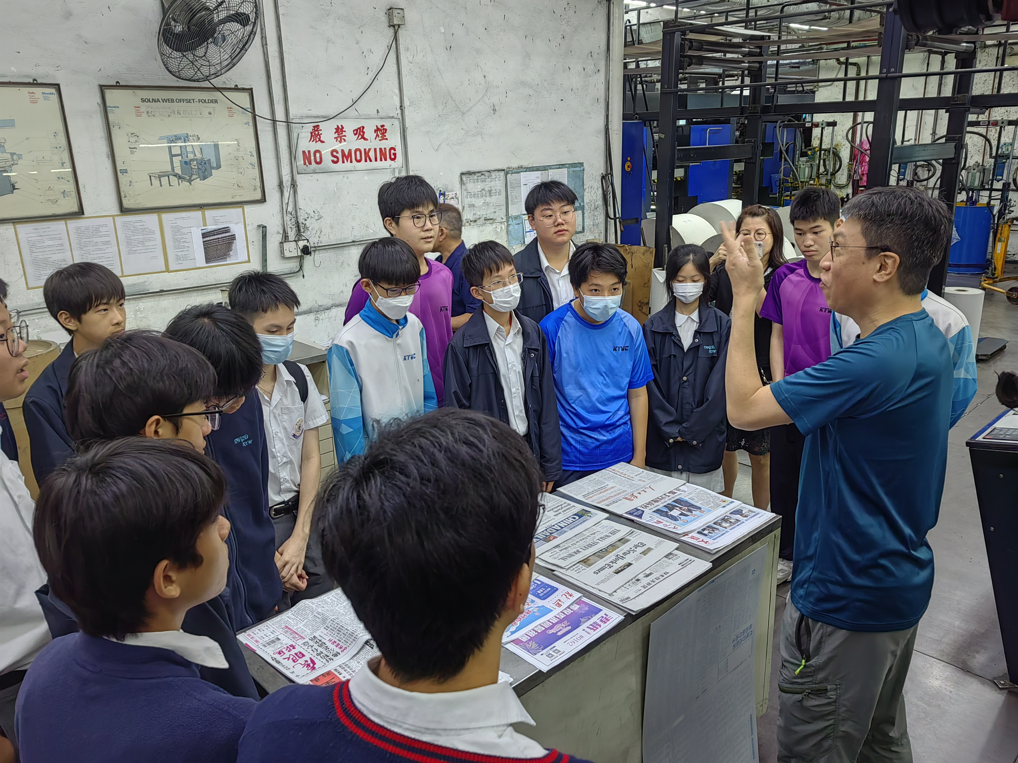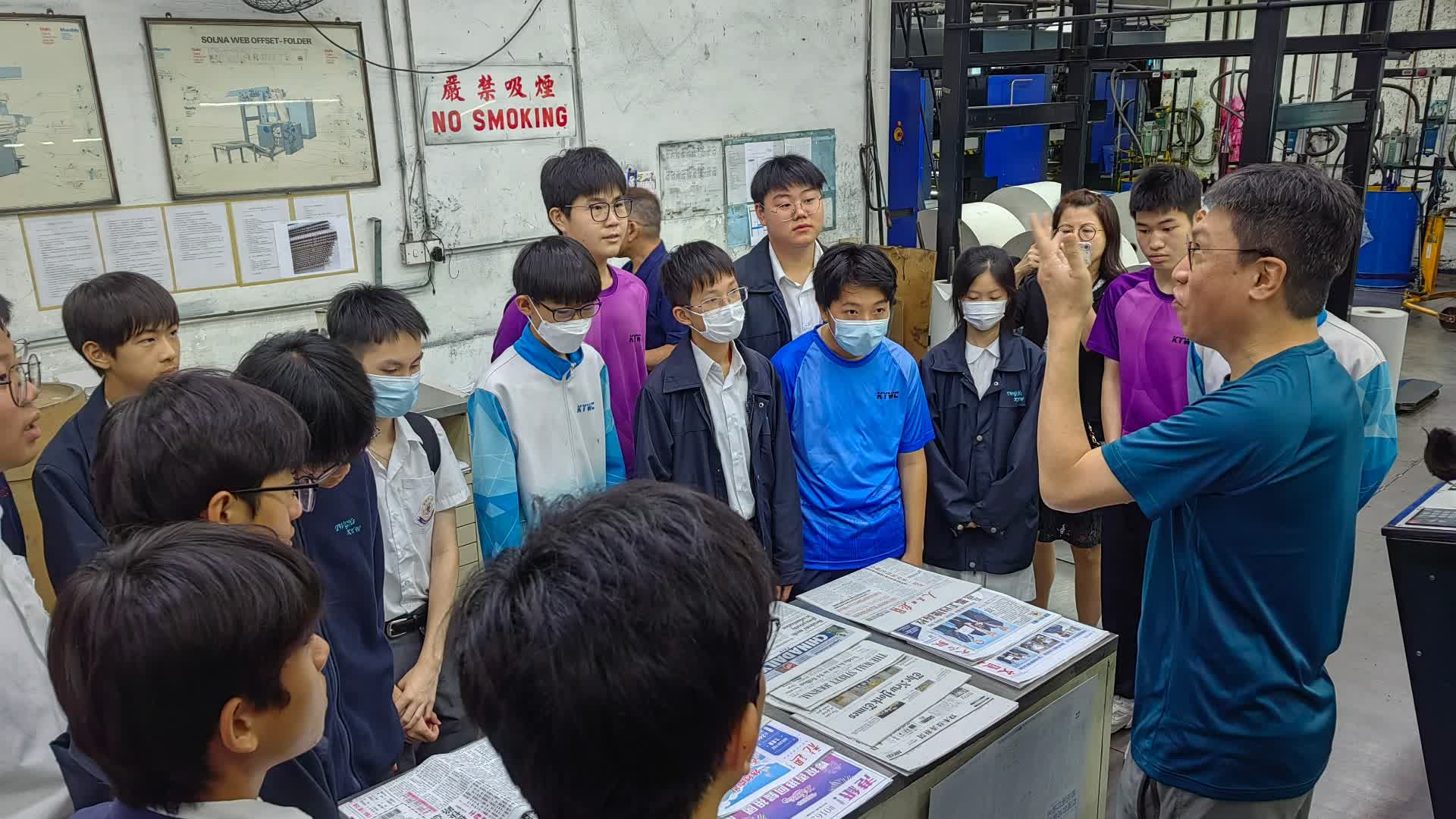 清晨九時半,師生們首先來到現代化印刷基地。集團三友印務副人事行政經理臧志羽現場解釋環保印刷技術時,特別強調查現在的印刷紙張會採用減少碳排放的材料。安柱中學的同學立即聯想到近期本港推行的「綠色印刷指引」,與工作人員展開討論。