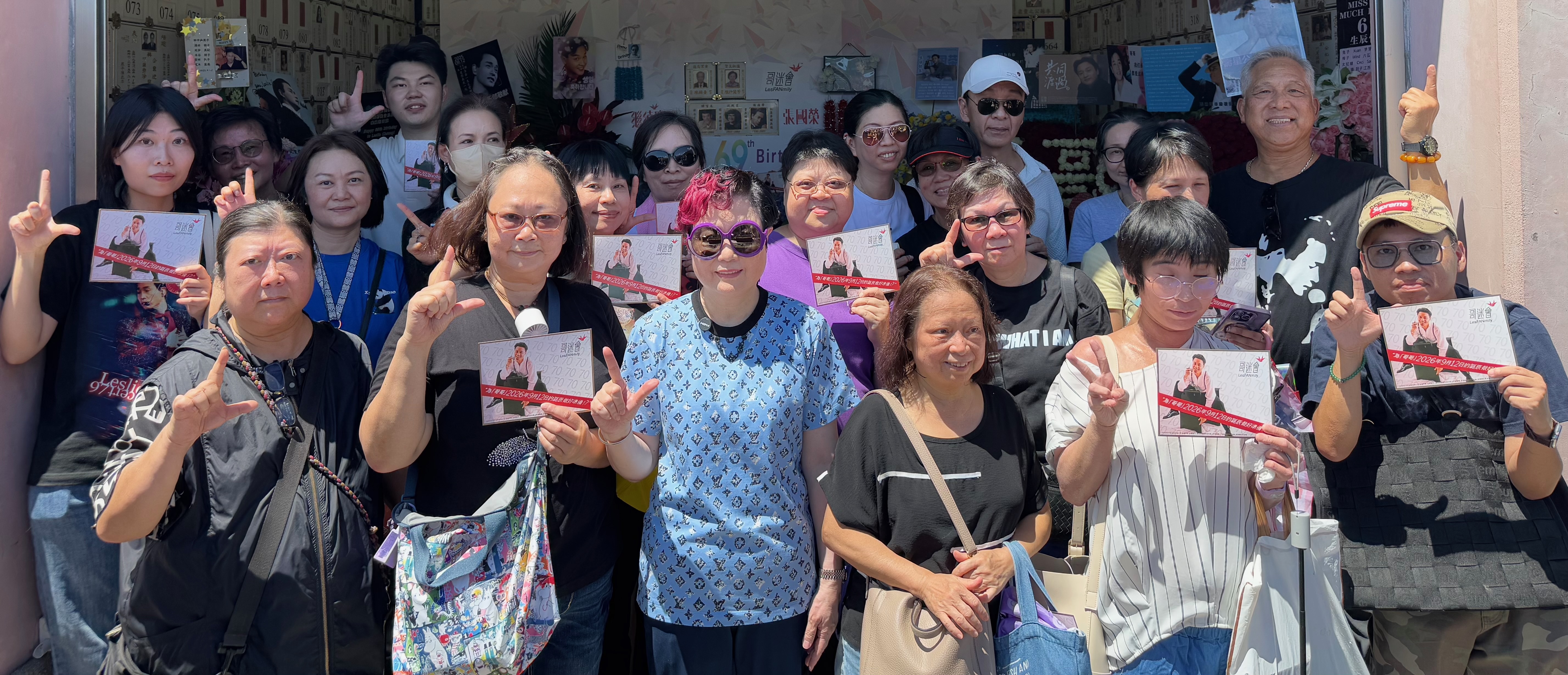 (大公文匯全媒體 特約記者 陳惠芳)今日(12日)是「哥哥」張國榮的69歲誕辰,陳淑芬(陳太)與兒子陳家豪、「哥哥」生前好友連炎輝及「哥哥」前助手Kenneth等,聯同近二百位來自各地的「哥」迷,前往沙田寶福山寶禪堂為「哥哥」送上生日祝福。