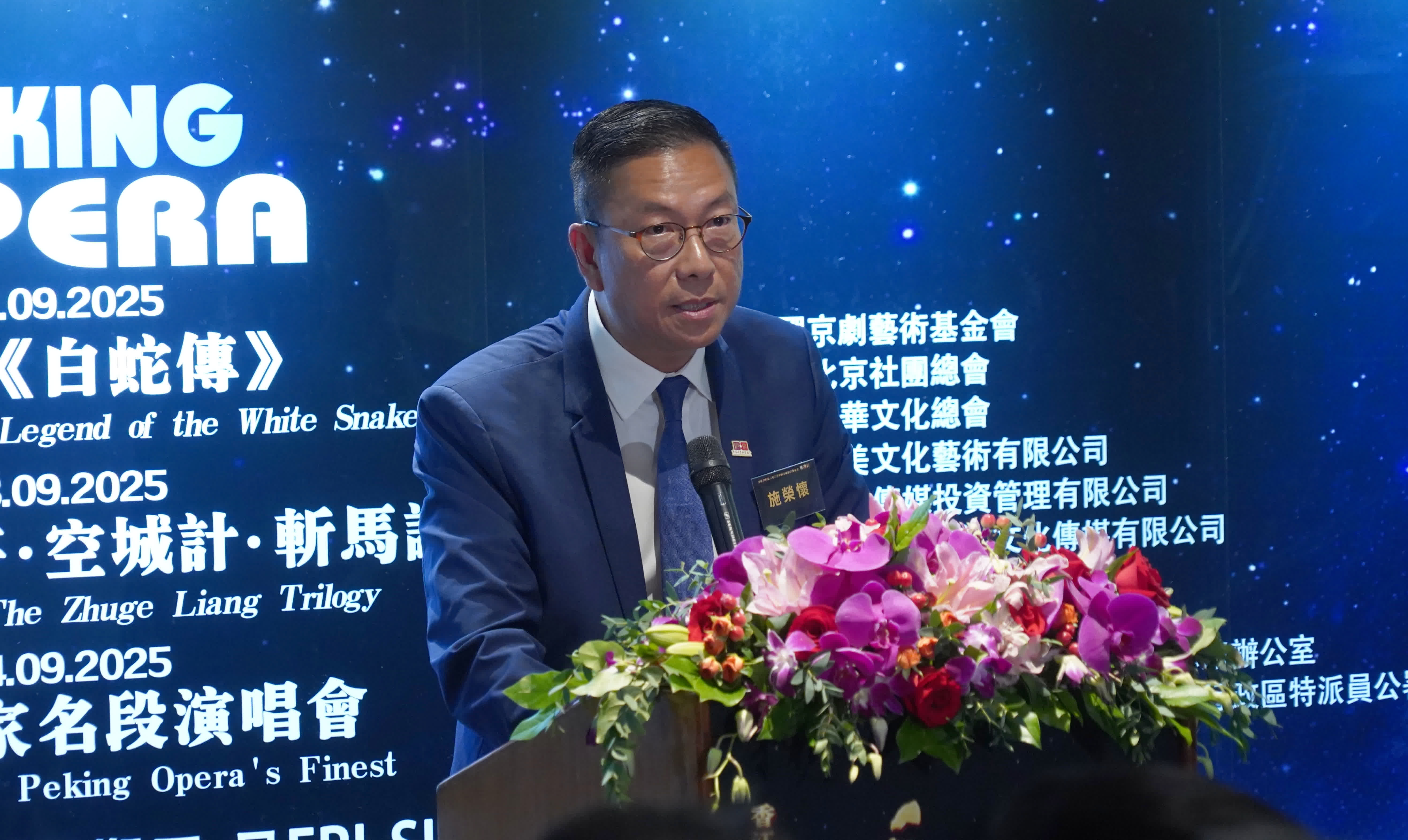 施榮懷致辭稱,香港北京社團總會一直積極搭建京港兩地文化交流的橋樑,京劇作為中華優秀文化的瑰寶,承載着豐厚的歷史底蘊與獨特的藝術魅力。「此次來自內地多家頂尖院團的藝術家們齊聚香港,盼以國粹為媒介,深化兩地文化共贏,傳播中華優秀傳統文化。連續三天的精彩演出既是一場藝術盛宴,也是一次文明的對話,相信香港的觀眾不僅能領略到京劇藝術的精髓,也將見證優秀傳統文化在當代的傳承與創新。」他堅信,京港兩地的文化合作,必將為香港建設成為中外文化藝術交流中心注入更大的動能。