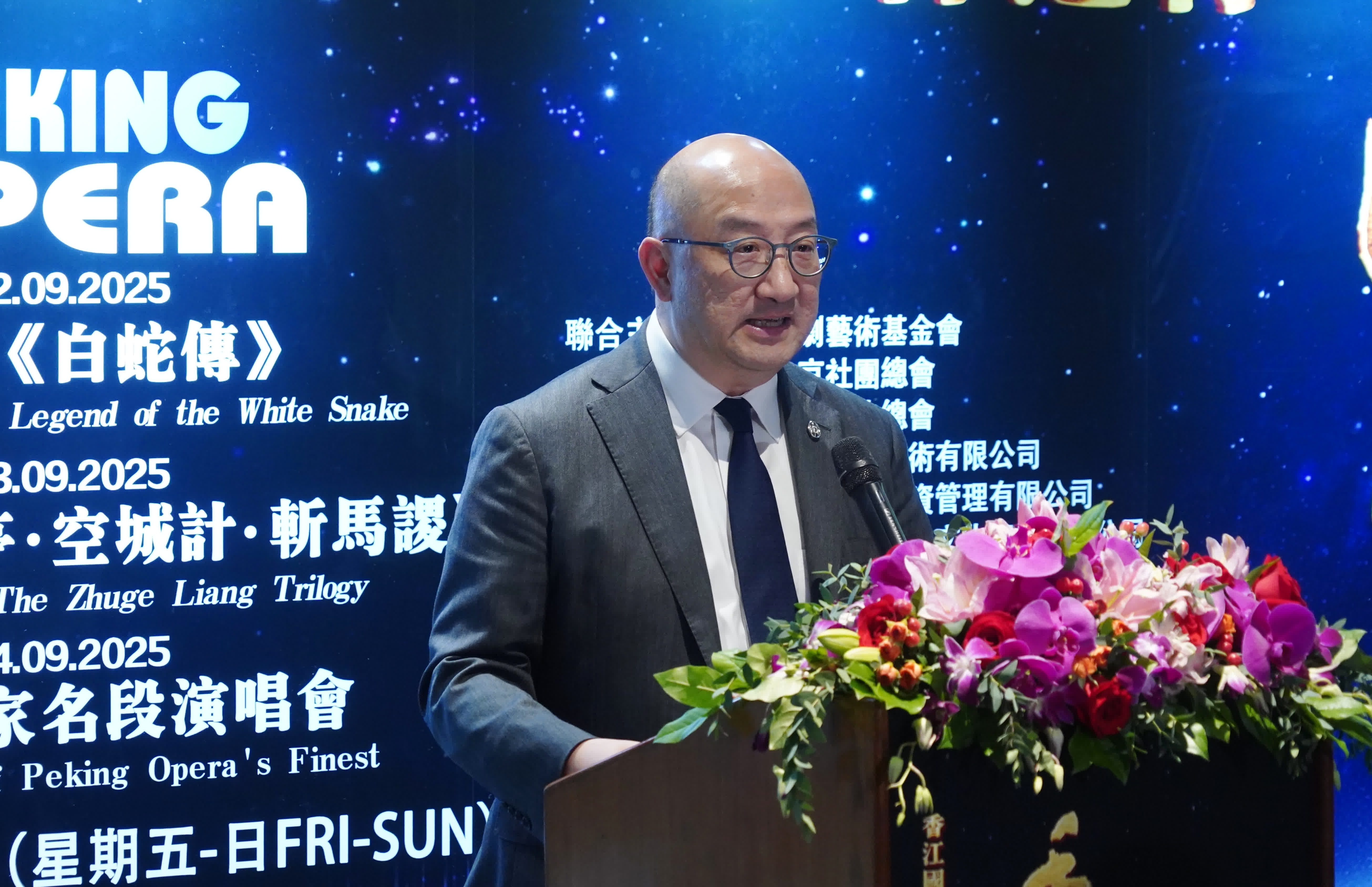 「香江國粹情——2025中國京劇藝術基金會香港行」今日(12日)舉行開幕儀式及首場演出《白蛇傳》,中華人民共和國外交部駐香港特別行政區特派員崔建春,全國政協常委、香港北京社團總會會長施榮懷,中國京劇藝術基金會理事長、京劇表演藝術家張建國,中央廣播電視總台亞太總站站長曹毅,香港中華文化總會會長高敬德,香港賽馬會公司事務執行總監譚志源,中央人民政府駐香港特別行政區聯絡辦公室宣傳文體部二級巡視員陳新育,中央人民政府駐香港特別行政區聯絡辦公室九龍工作部副部長李文彬,廣播處長、香港電台台長關婉儀等嘉賓,以及20多個國家的駐港總領事出席了開幕儀式。