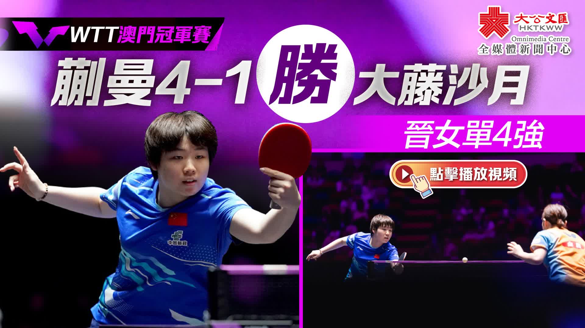 關鍵詞:WTT澳門冠軍賽蒯曼大藤沙月