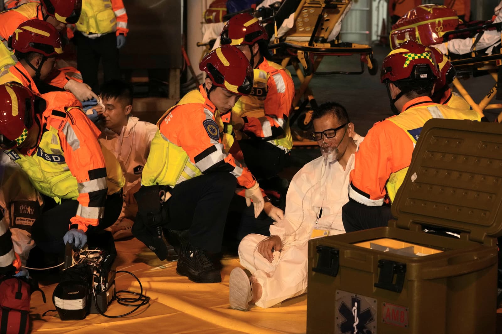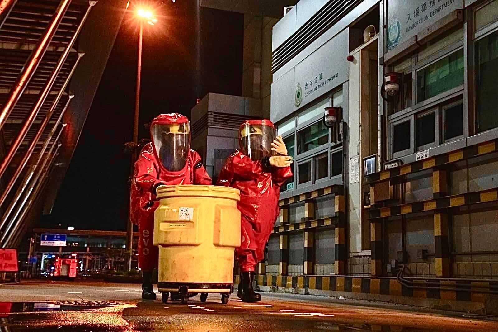 香港消防處指出,兩地消防及救護人員按既定應急機制,迅速趕赴現場展開滅火救援工作,並設立「危害物質事故」洗消設施。救護人員使用「大量傷者事故檢傷分流系統」為傷者分流和處理傷勢,傷者及旅客其後由海關及入境處職員協助補辦出入境及清關手續。而警務處及民安隊人員則在現場管理人流。