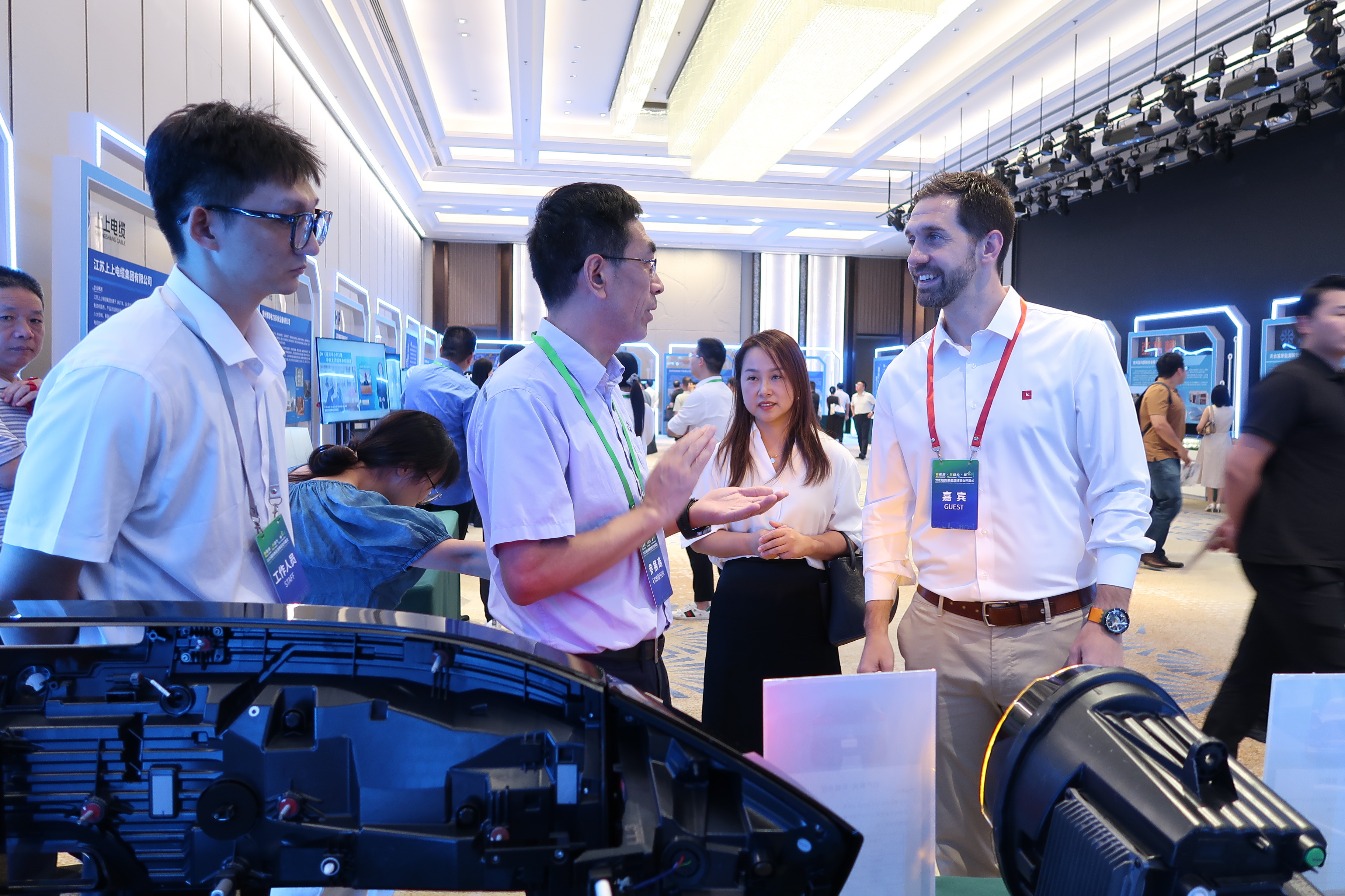 中共江蘇省委常委統戰部部長鬍廣傑出席博覽會開幕式。開幕式現場舉行了主旨演講,產業類、科創類與人才類項目簽約儀式。
