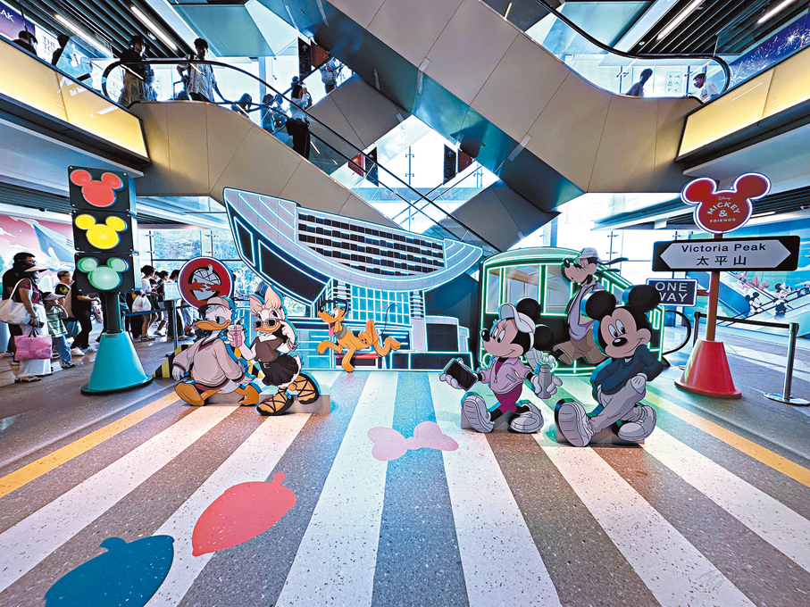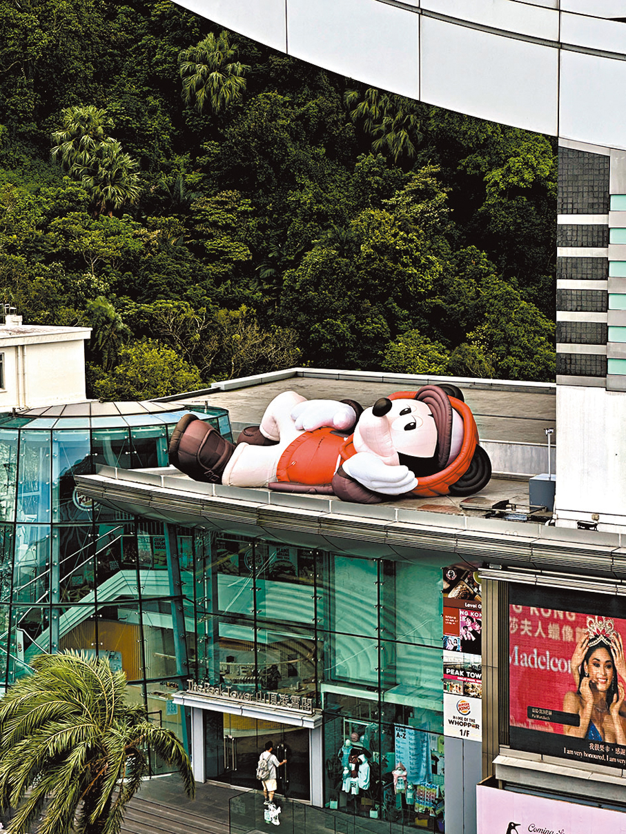 適逢香港迪士尼與太平山展開夢幻聯動,近日推出了「Mickey Keep It Real」主題活動。山頂多處設置迪士尼主題打卡點,包括米奇「I LOVE HK」標誌、米奇「愛心觀景台」等裝置,更有一隻超大型米奇悠閒側躺在凌霄閣門上,可愛造型吸引無數遊客拍照打卡。就連山頂纜車也換上迪士尼主題裝飾,為這趟太平山之旅增添更多夢幻色彩與難忘回憶。