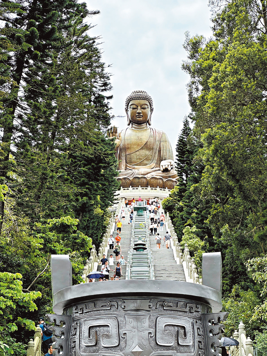 毗鄰市集的寶蓮禪寺始建於1906年,寺內建築沿中軸線對稱分布,包括大雄寶殿、萬佛寶殿、鐘鼓樓與禪堂等,構成一派莊嚴肅穆的佛教院落。寺中齋堂提供精緻素齋,以及清心茶品。不遠處矗立着全球最高的戶外青銅坐佛─天壇大佛。登上256級階梯抵達平台,不僅可近觀大佛宏偉法相,還能俯瞰寶蓮禪寺全貌與大嶼山遼闊風光。
