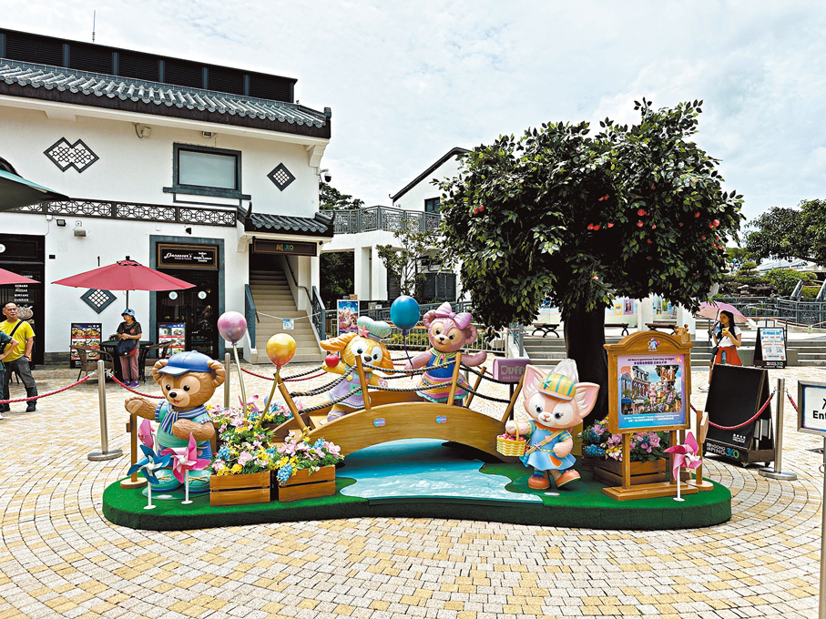 抵達昂坪後,映入眼簾的是約5.5米高的奇妙夢想城堡裝置。市集涼亭前特設Duffy與好友20周年主題裝置,吸引了眾多旅客打卡拍照。此外,市集內有不少傳統文化的打卡裝置,包括印有八組祝福字句的「祝福鼓」、掛滿祈福寶牒的「菩提許願樹」等。