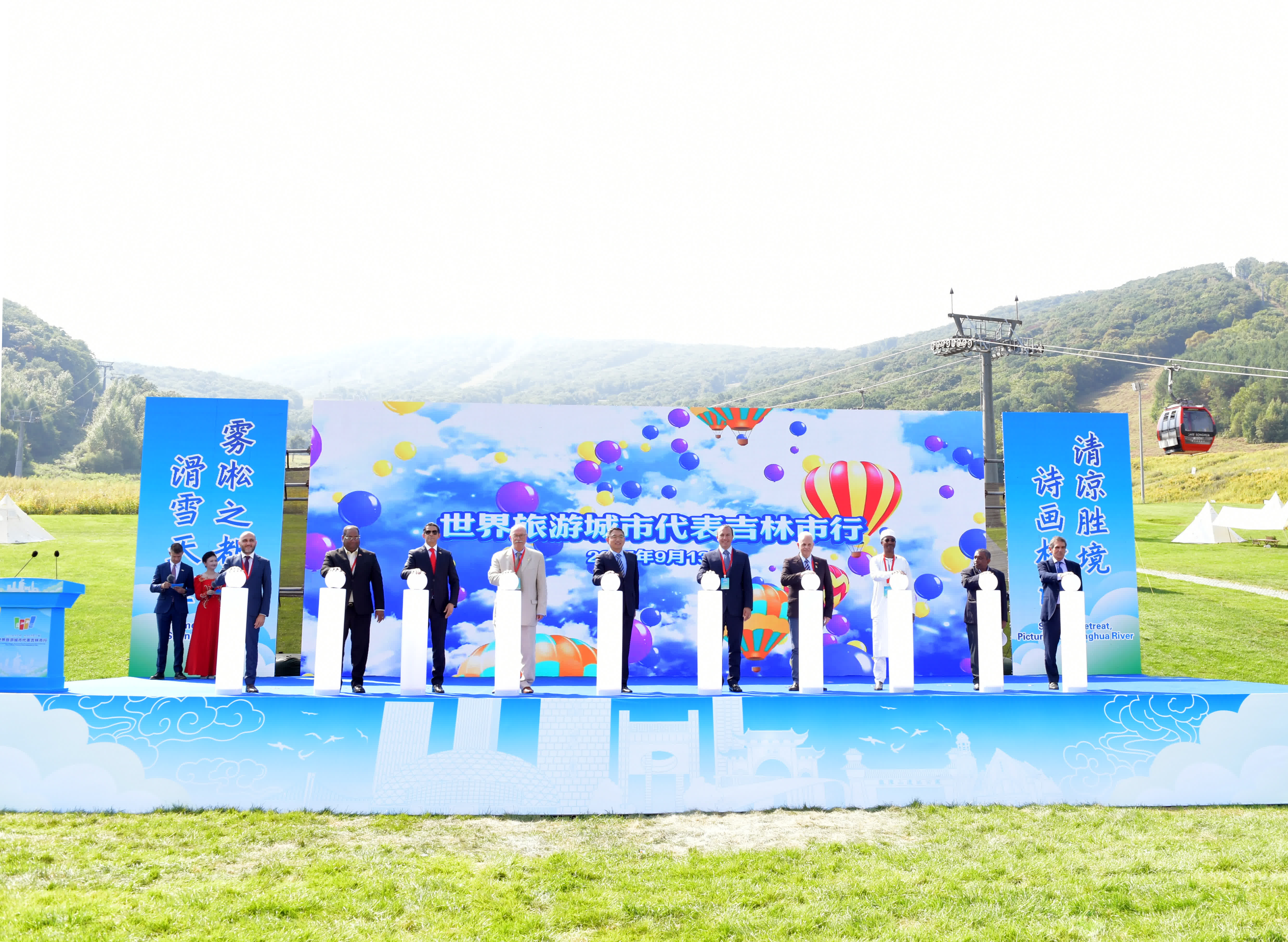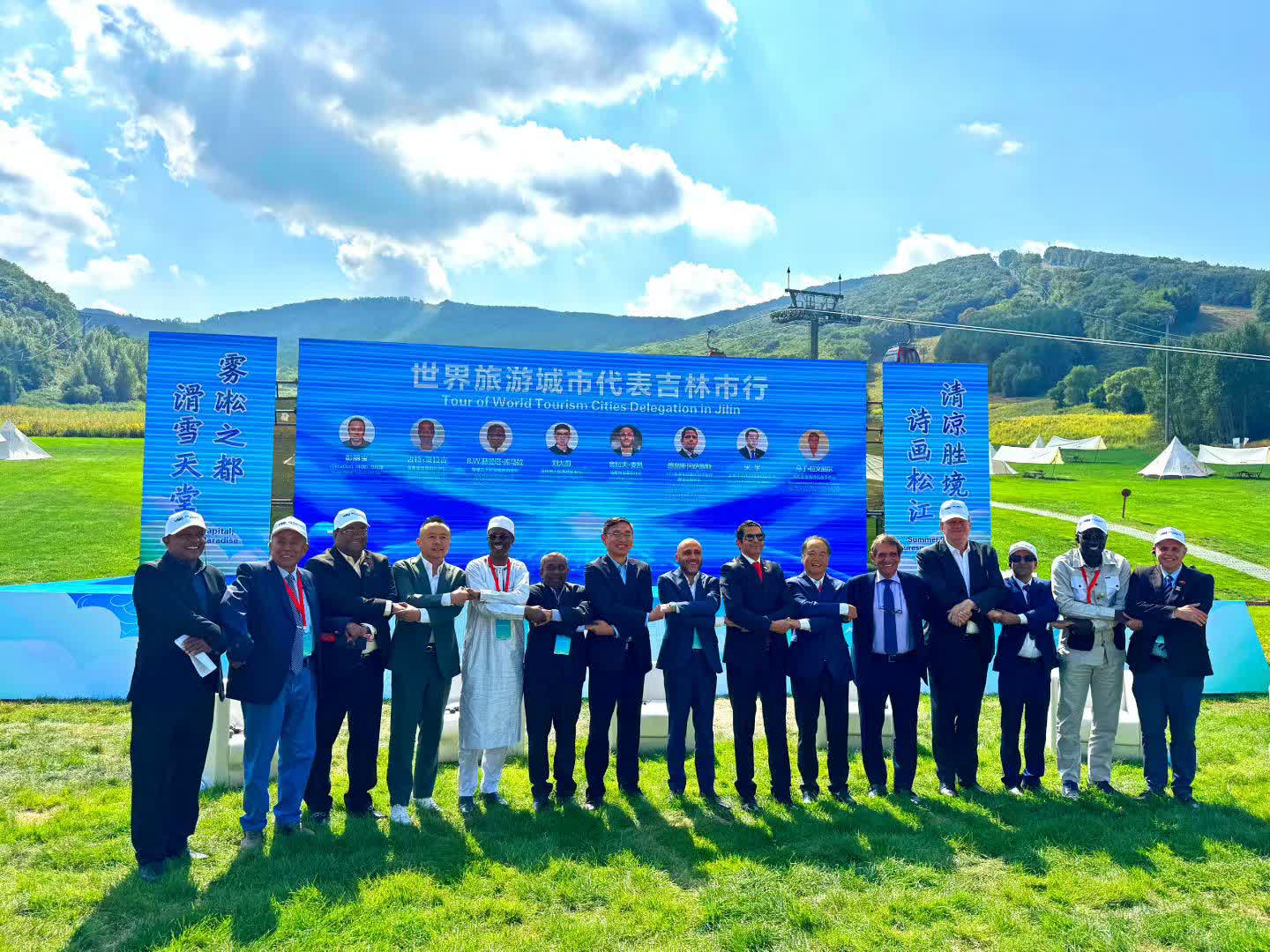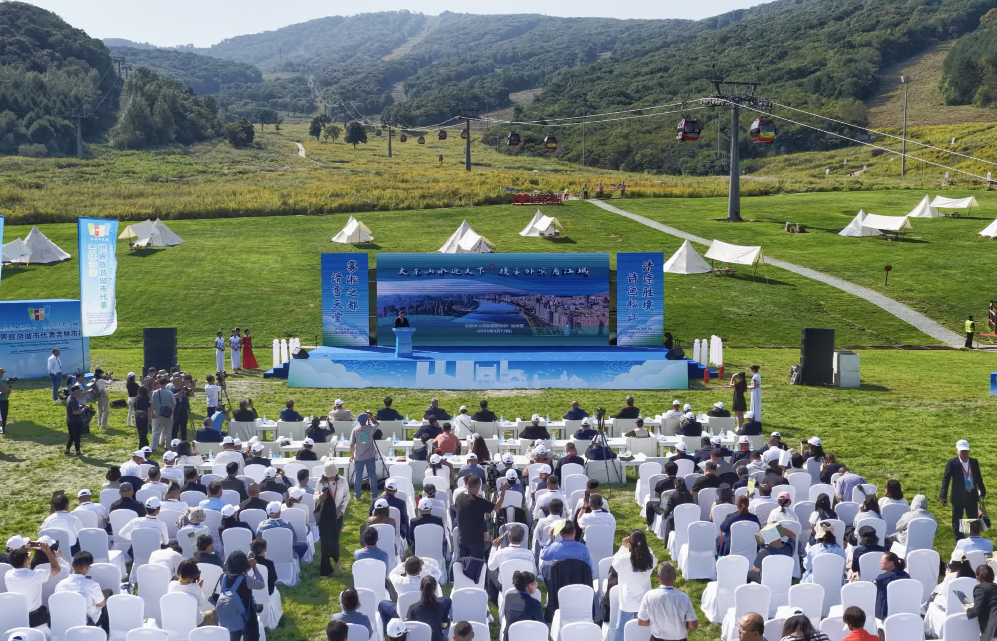 「大東山水迎天下 攜手外賓看江城」世界旅遊城市代表吉林市行活動9月11日至13日在吉林市松花湖度假區成功舉辦。本次活動精心策划了豐富立體的行程,來自國外相關城市的市長、副市長、旅遊局長,部分國家駐華使館大使及工作人員,海外旅行商等50餘位來訪嘉賓,用三天的時間裏走進松花湖風景區、隕石博物館等特色景點,直觀感受吉林文旅魅力;設置合作交流推介環節,通過多國代表發言、城市推介及《樂享冰雪旅遊——世界旅遊城市吉林倡議》發布,凝聚行業共識;此外還配套「建設世界旅遊城市 增進人文交流」主題草坪沙龍、國內外旅遊商對接洽談,以及文創展與商業街巡展等活動,全方位展現吉林文旅魅力、推動深度合作。