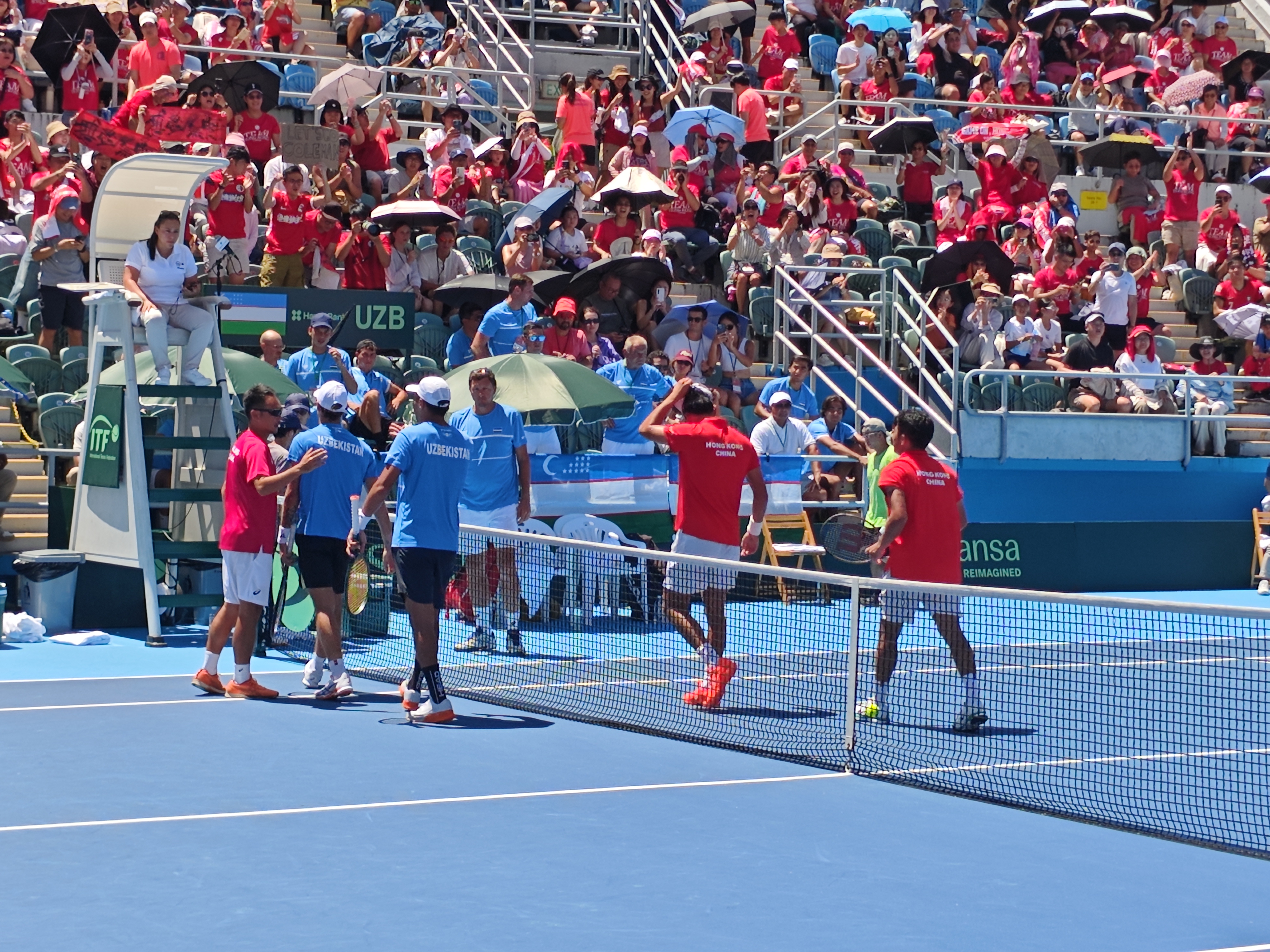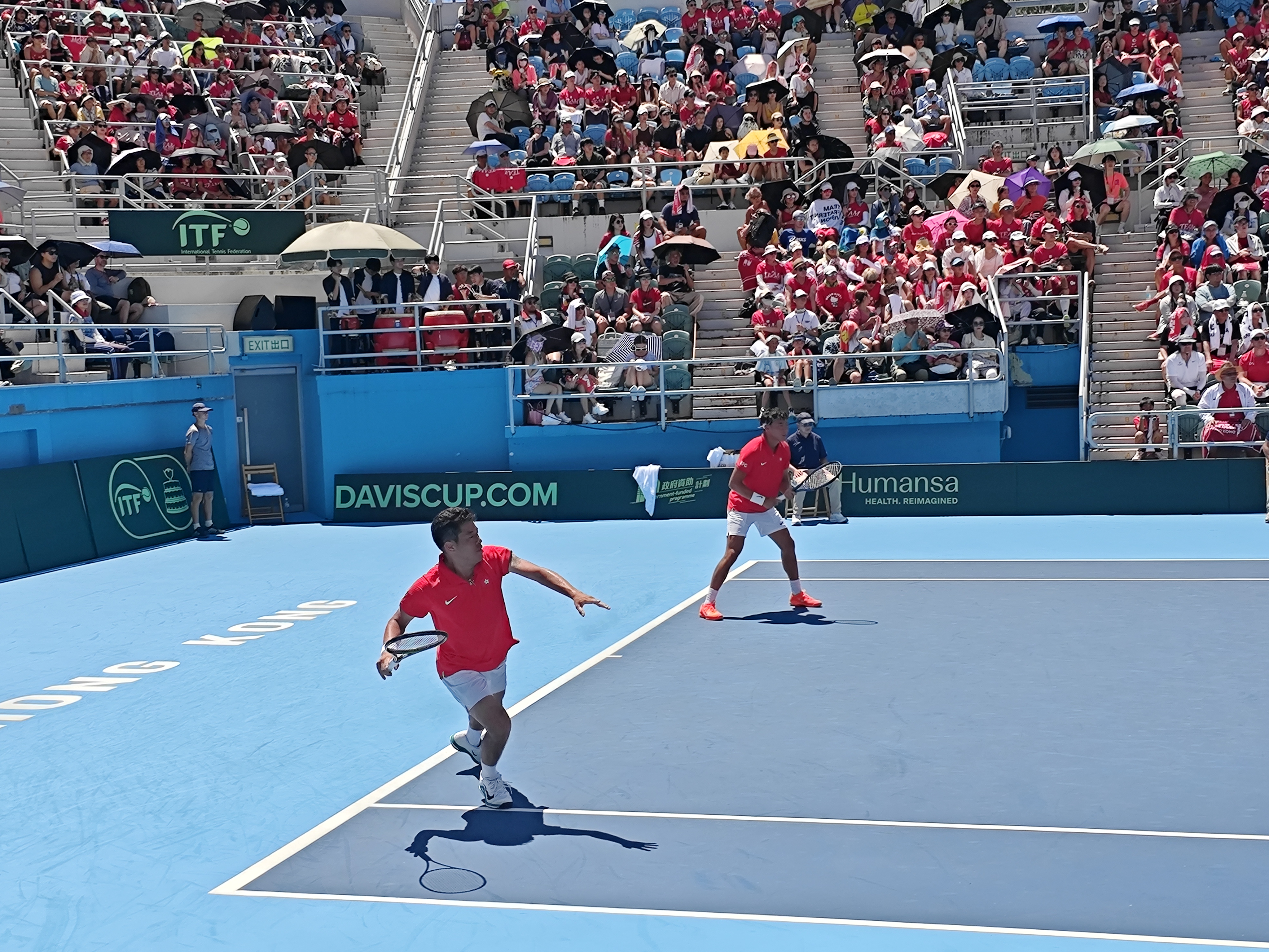 (大公文匯全媒體 記者 劉鴻霖)中國香港男子網球代表隊自周六(13日)起,一連兩日在維多利亞公園網球場出戰5場3勝制的台維斯盃世界Ⅱ組賽事,與烏茲別克斯坦隊爭奪世界Ⅰ組附加賽資格。首日兩隊暫1∶1戰平,今日(14日)在維多利亞公園網球場續戰。上午,黃澤林/黃俊鏗以7-5、7-6(9-7)直落兩盤取勝蘇丹諾夫/福明。若下午港隊再獲一場勝利,即可晉級世界Ⅰ組附加賽。