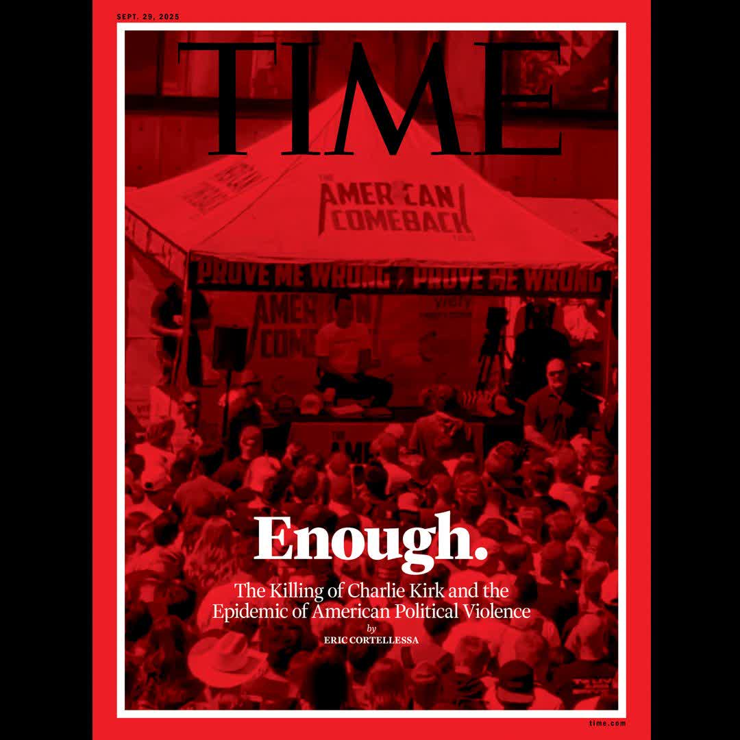 最新一期的美國《時代》雜誌,用上了一個血紅色封面,並且用粗體寫着一個大字:Enough(夠了)。即使長年槍擊案頻發,但保守派政治名人查理·柯克在光天化日下遭到槍殺一事仍然震驚美國社會。《時代》的「夠了」,反映的是一些美國人的心態,但問題在於,美國的極端撕裂和政治暴力真的「夠了」嗎、未來還會否發生更極端的事件?這對於香港又有何啟示?