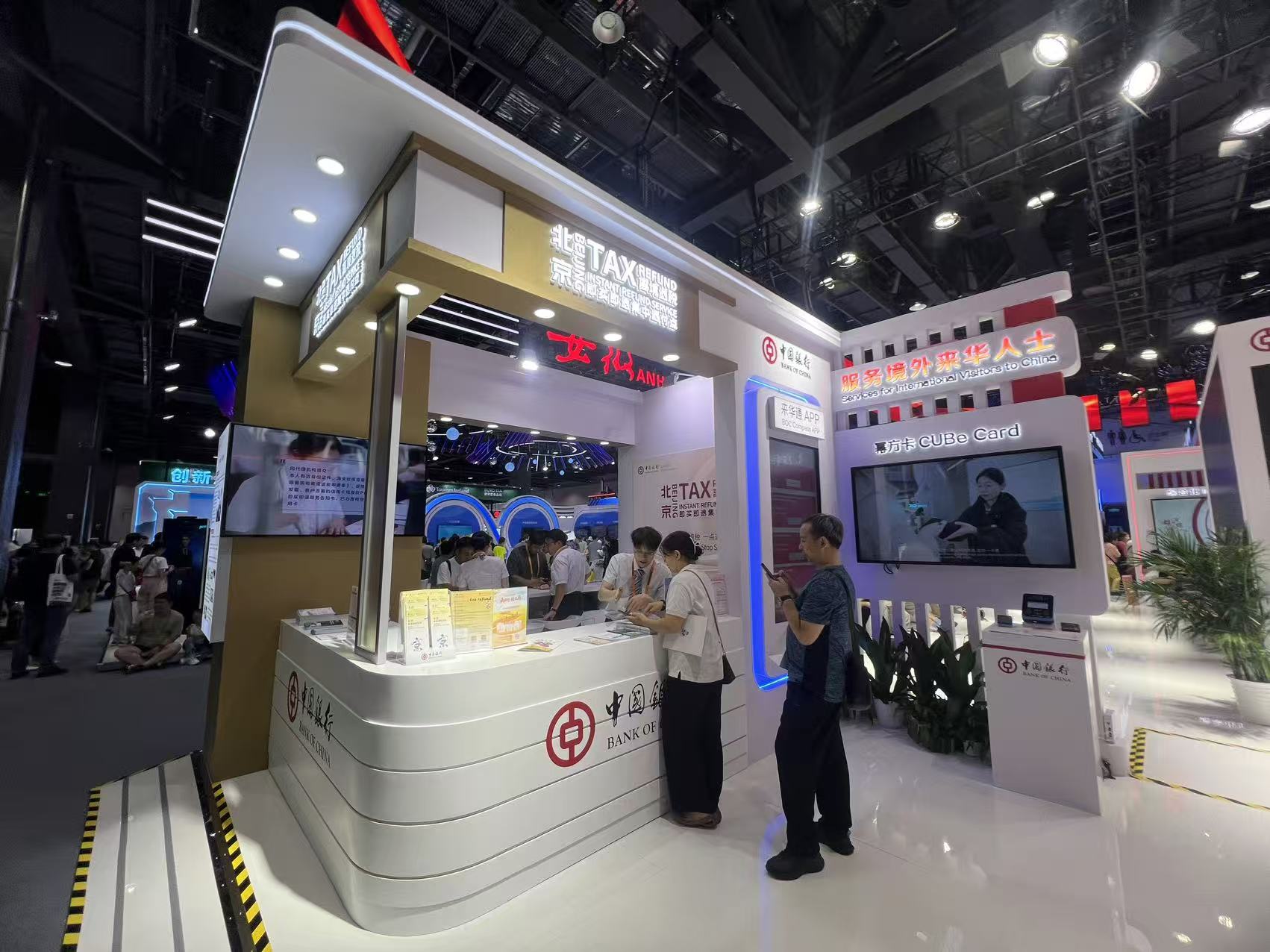 本屆服貿會現場,入境遊全鏈條企業集中亮相,帶來不少實用的便利服務。中國銀行特別開設即買即退集中退付點,有效提高了外籍來華人員的消費體驗。一位在唐人坊購買非遺絹人「唐娃娃」的外國遊客現場辦理離境退稅「即買即退」業務,短短几分鐘便拿到了退稅款,大讚:「北京速度!」數據顯示,截至今年8月底,北京離境退稅業務量同比增251%,商品銷售額增長84%,累計服務170個國家和地區近1.5萬名境外旅客,有效激發了入境旅遊消費潛力。