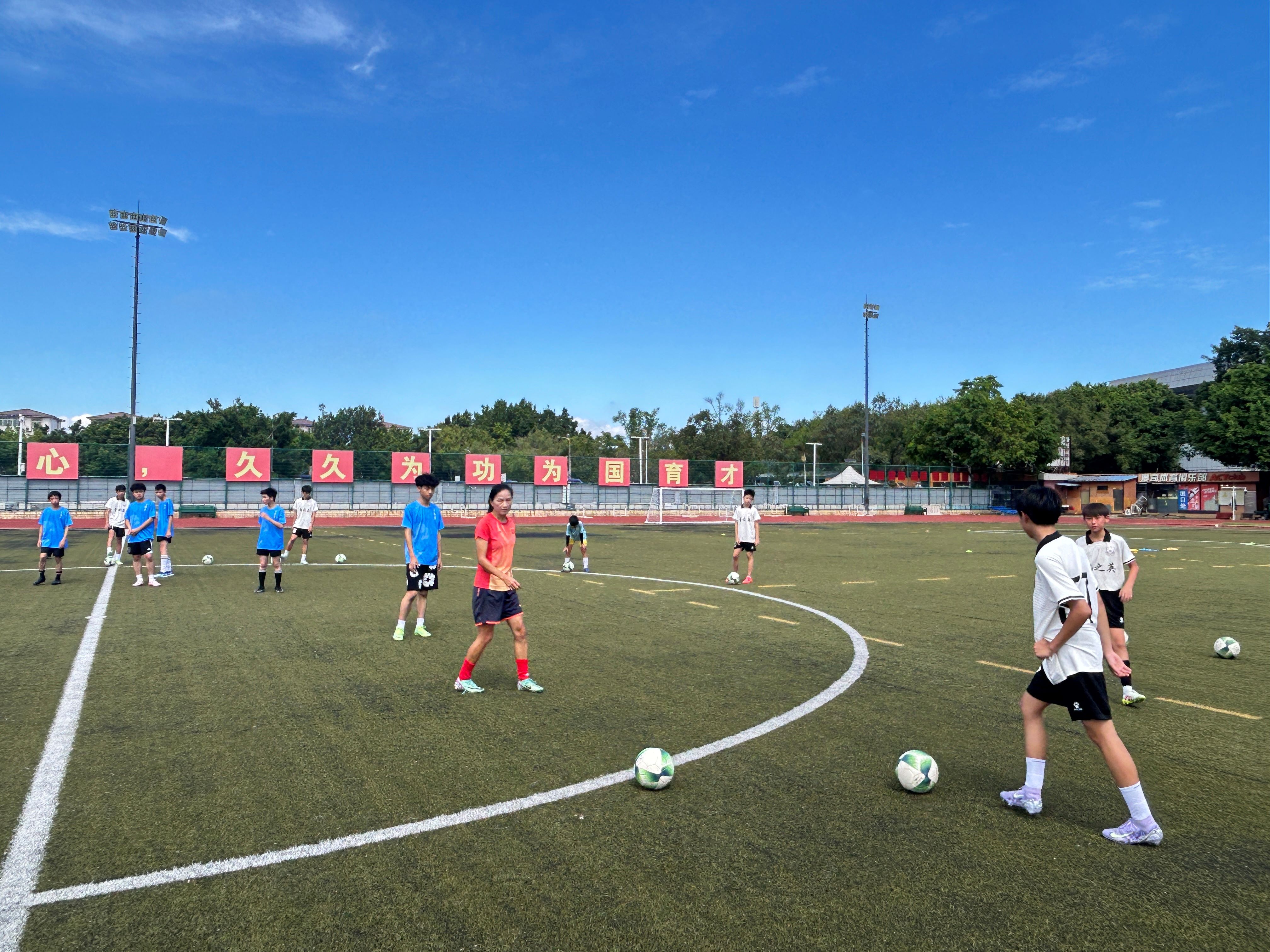 記者在現場看到,球員們圍成一個圈,在趙利紅的指導下,進行短傳配合協作。過程中,趙利紅對球員們的傳球次數、角度提出明確的要求。部分球員動作不到位,她俯身親自指導。能有機會接受足球名宿的指導,隊員們十分珍惜,練得格外認真。