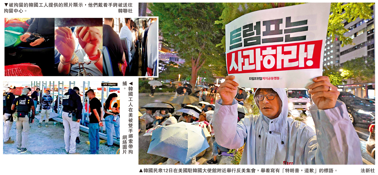 韓國輿論認為,特朗普政府言行的反覆無常和抓捕行動讓韓國民眾感到震驚、憤怒和恐慌。有韓國政黨表示,此事給韓方帶來「慘痛的屈辱」,韓國在貿易協議中承諾送給美國「投資大禮包」,卻遭「背後捅刀」。