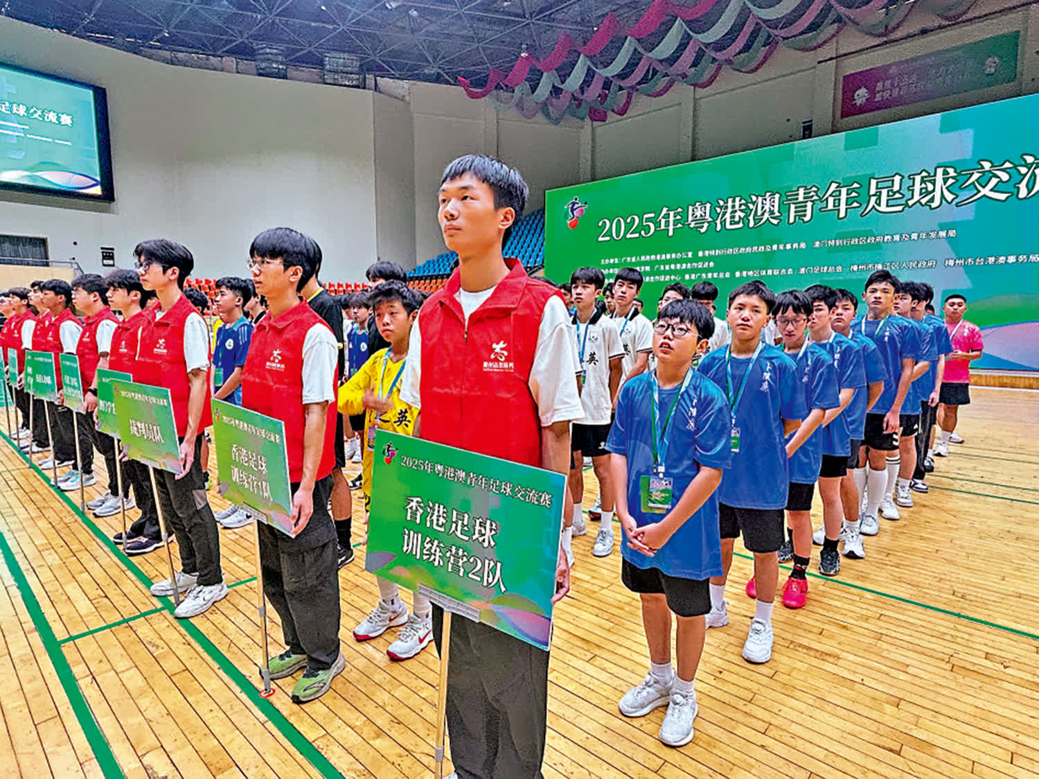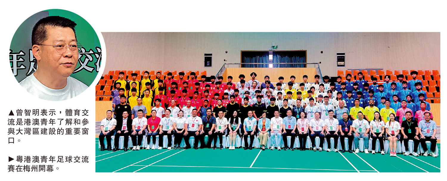 (大公報記者 敖敏輝<文、圖>)第15屆全運會男子足球U16賽事在梅州上演,粵港澳以全運為媒開展青少年足球交流合作。15日,由廣東省港澳辦、香港民政及青年事務局、澳門教育及青年發展局聯合主辦的「綠茵築夢 接力全運」2025年粵港澳青年足球交流賽在梅州開幕。在兩天的交流活動中,除了球技切磋,港澳球員還探訪「足球之鄉」梅州的足球文化,亦在十五運會U16男足決賽現場觀看金牌戰。中國女足前隊長趙利紅擔任本次交流賽總顧問,更親自為香港青訓隊員授課。