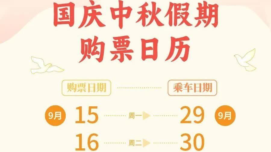 大公文匯網報道,2025國慶中秋假期火車票購票日曆來了,快定好鬧鐘,準時鎖定車票↓