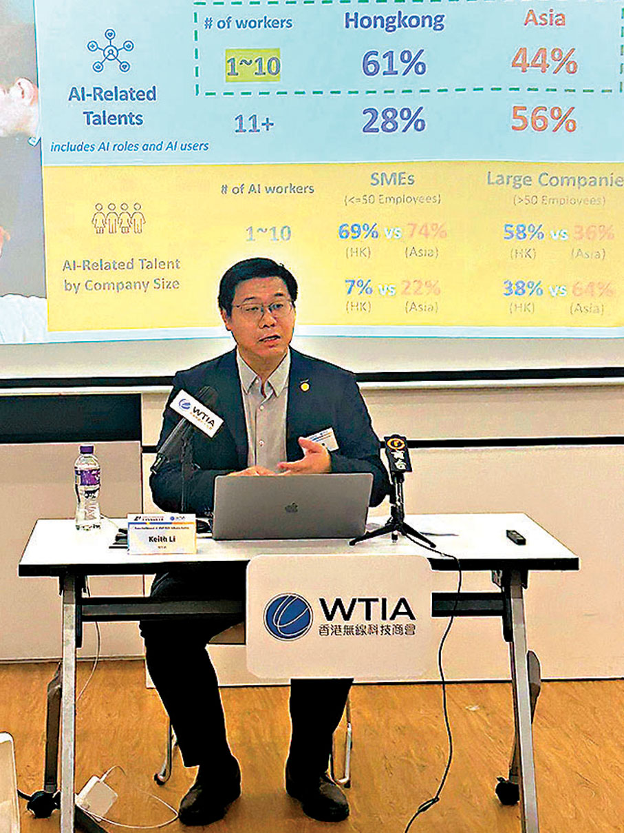 香港無線科技商會主席李勁華昨日表示,數據清楚反映香港企業大幅採用AI,特別是生成式AI帶動整體應用及投資提升。他相信,若在算力經濟性、行業化人才培訓與清晰合規框架上再走前一步,香港有條件把握AI帶來的新一輪競爭優勢,讓創科成果更大規模走進產業。
