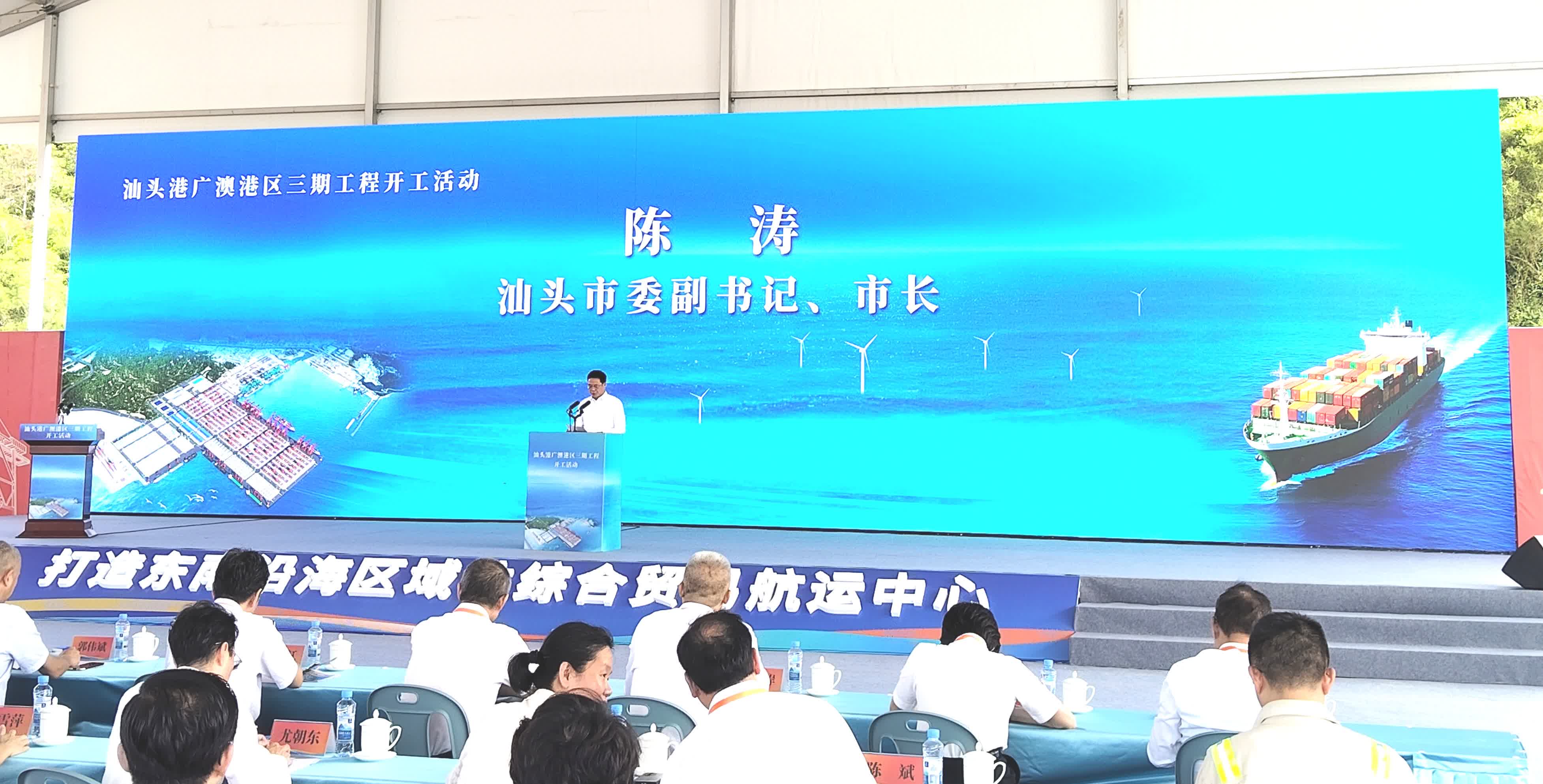 汕頭市委副書記、市長陳濤在致辭中說,汕頭市委、市政府將緊緊圍繞「打造世界一流港口」目標,全力支持港口建設,持續完善港口集疏運體系,加快培育更多國際集裝箱航線,推動現代物流、海上風電等產業與港口經濟的深度融合發展,努力把汕頭港廣澳港區建設成為引領粵東、服務全國、聯通國際的重要樞紐港口,為譜寫中國式現代化的汕頭篇章提供有力支撐。