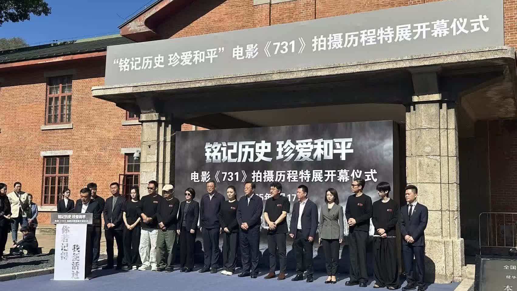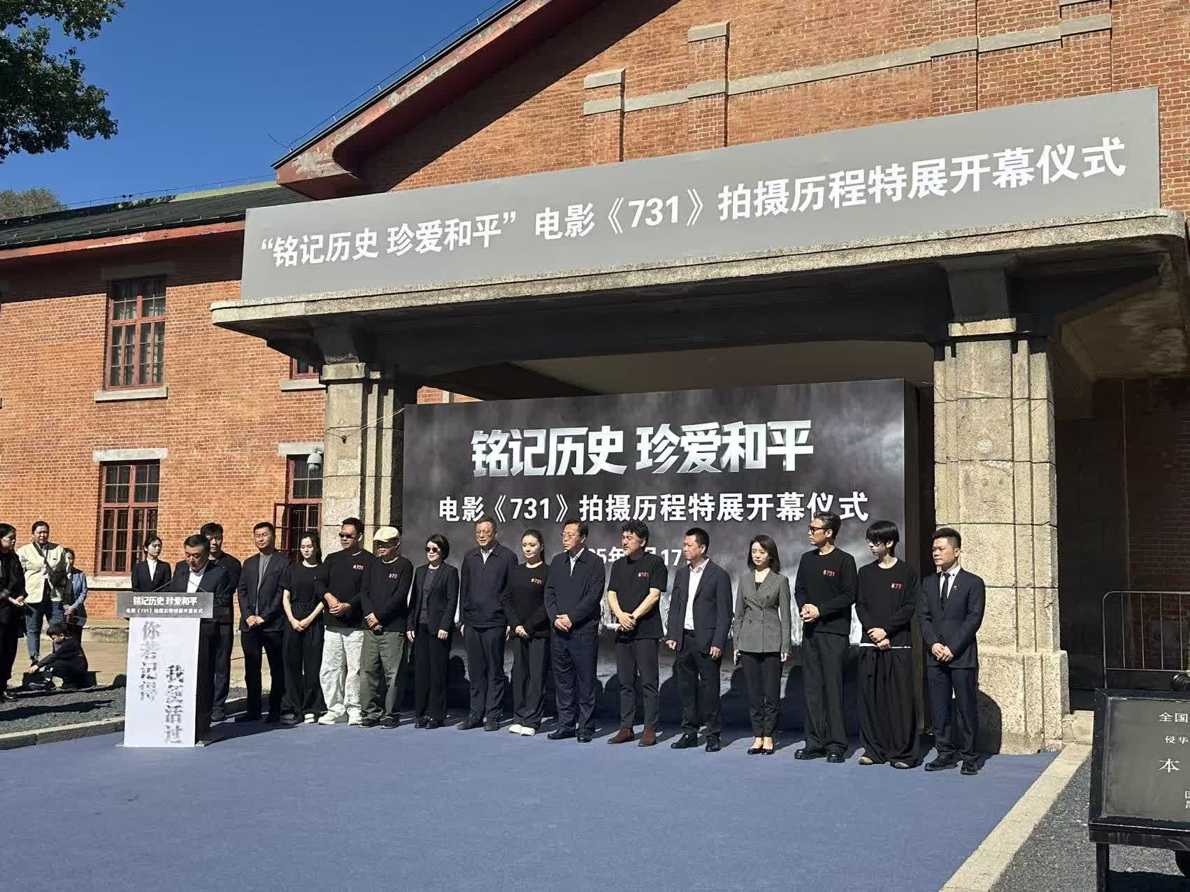 (大公文匯網記者 于海江、王欣欣、吳千 哈爾濱報道)為銘記歷史、緬懷先烈、警示後人,電影《731》定於2025年9月18日全國公映,並於9月17日在哈爾濱舉辦線下首映禮。為配合電影宣傳,加深公眾對七三一部隊細菌戰歷史的認知,「銘記歷史 珍愛和平」電影《731》拍攝歷程特展開幕儀式在侵華日軍第七三一罪證陳列館本部舊址門前舉行。電影《731》主創團隊及演職人員等參加該活動。