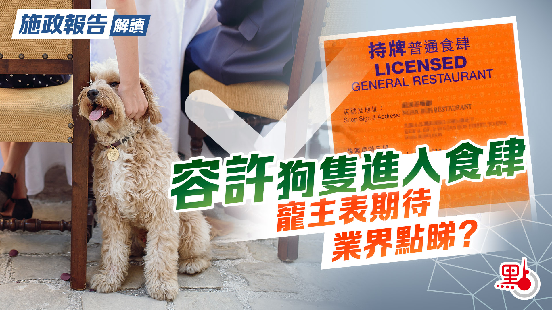 當今社會,寵物是許多家庭的重要成員,全港超過24萬住戶飼養貓或狗做寵物,總數超過40萬。香港現行的《食物業規例》第132X章第10B條自1994年公告,初衷為防止瘋狗症傳播,保障公眾衞生,惟至今逾30年未有改變,令不少愛狗人士難以與愛寵外出共餐。今年初,大埔一間寵物友善餐廳更因准許狗隻進入餐廳內部遭檢控,被停牌7日,成為近年來首例。