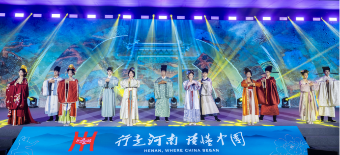 大會現場不僅有思想的碰撞,更有文化的盛宴。仰韶彩陶服飾將遠古文明穿在身上,甲骨文服飾讓文字 「活」 了起來,宋服走秀盡顯大宋風雅;少林武僧的拳腳功夫剛勁有力,再現中華武術魂;「武則天」 主題沉浸式演繹帶領觀眾一秒 「穿越」 至盛唐洛陽…… 鄭州、開封、洛陽、安陽、焦作等地市還通過特色展演,串聯起中原文化的 「多元拼圖」,讓現場觀眾沉浸式感受河南文旅的獨特魅力。