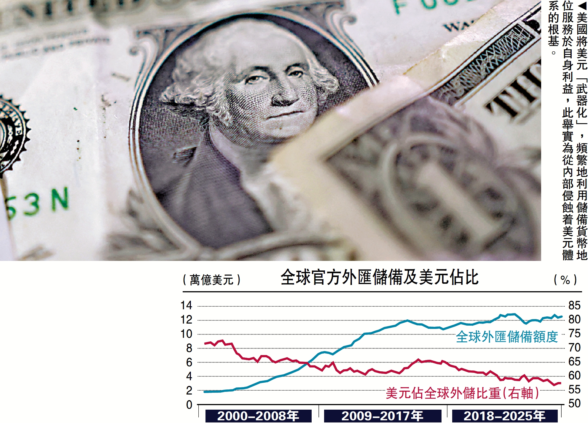 因此,「美元陷阱」及相關現象揭示出,以一國主權貨幣充當國際儲備貨幣所固有的不對稱、不協調、不充分的矛盾。隨着美國將美元「武器化」,愈發頻繁地利用其儲備貨幣地位服務於自身利益,這些矛盾日益突出,並從內部侵蝕着美元體系的根基。