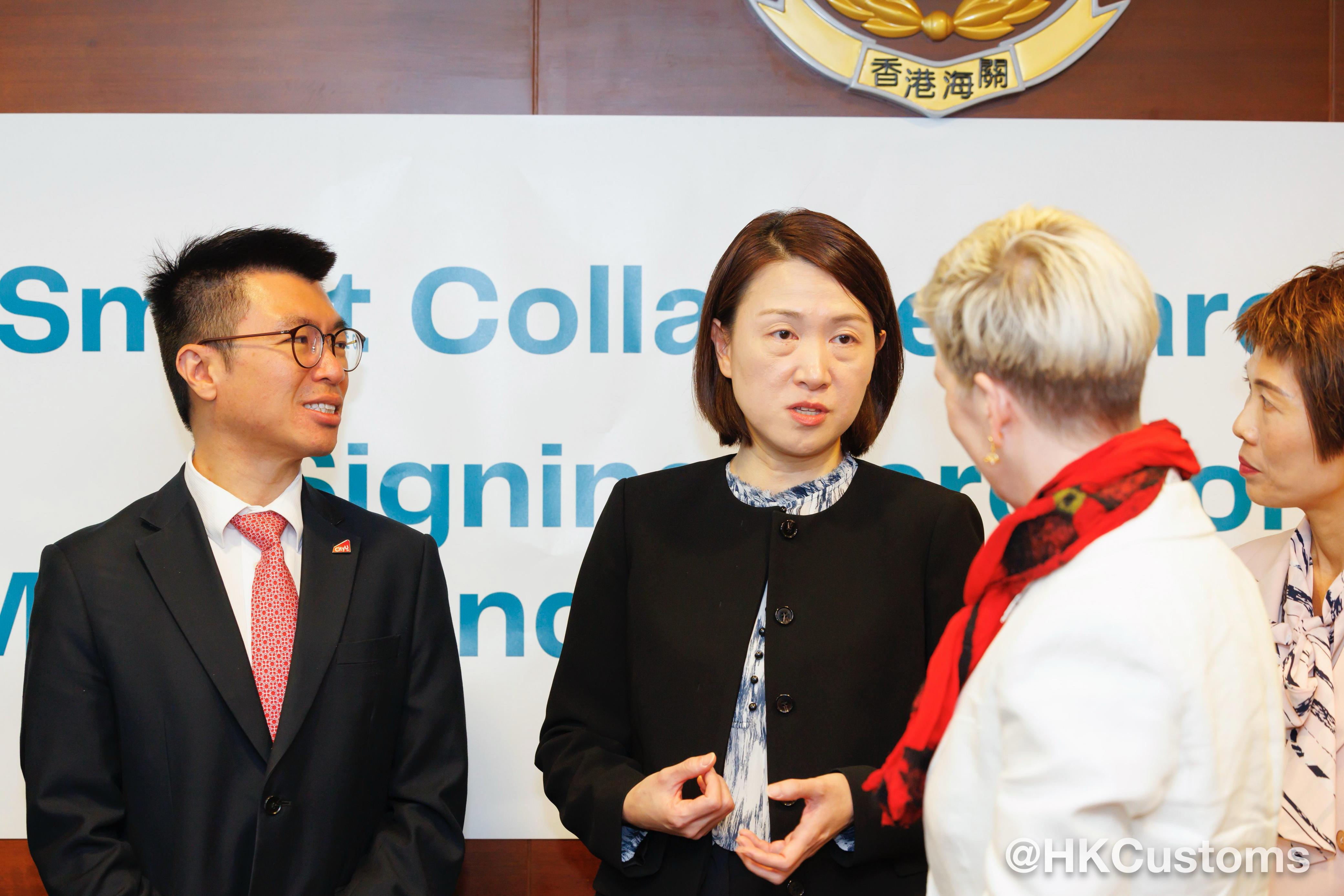 蔣依莉在簽署儀式上表示,香港海關與城大多年來建立了深厚的夥伴關係,在學術課程及搜查犬隊專業培訓方面展開多項合作計劃。是次簽署合作備忘錄不僅標誌着雙方合作的重要里程碑,更正式開展智能頸圈的數據研究和分析,透過研究和分析搜查犬的心跳、脈搏、體溫等數據,並加以優化應用,以提升搜查犬的執法能力和完善犬隻福利。
